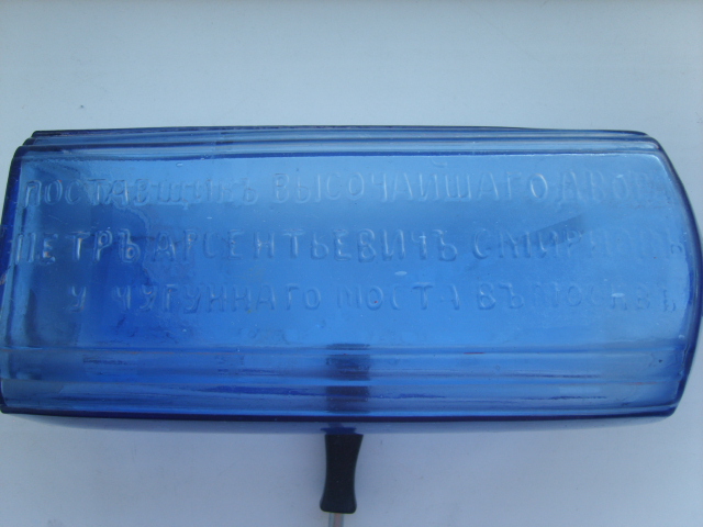 Штоф.Бутылка.поставщик высочайшего двора Петр Арсентьевич Смирнов у Чугунного моста в Москве.