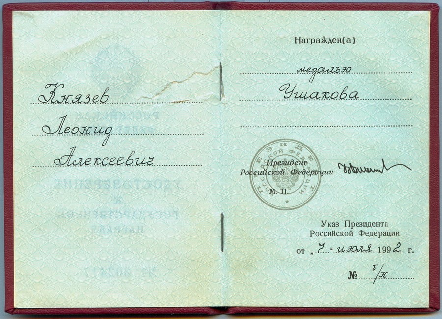 Указ Президента Российской Федерации от 07.07.1992 г. № 751