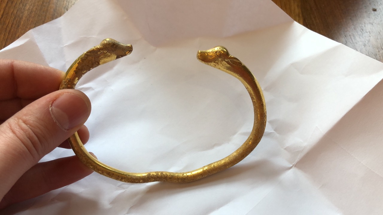 Добрый день. Помогите определить, пожалуйста.Была найдена в южном кавказе, вес 136 грамм, золото 950-960 пробы.Некоторые специалисты утверждают, что это первое тысячелетие до нашей эры. Хотелось бы узнать ваше мнение. С ув.