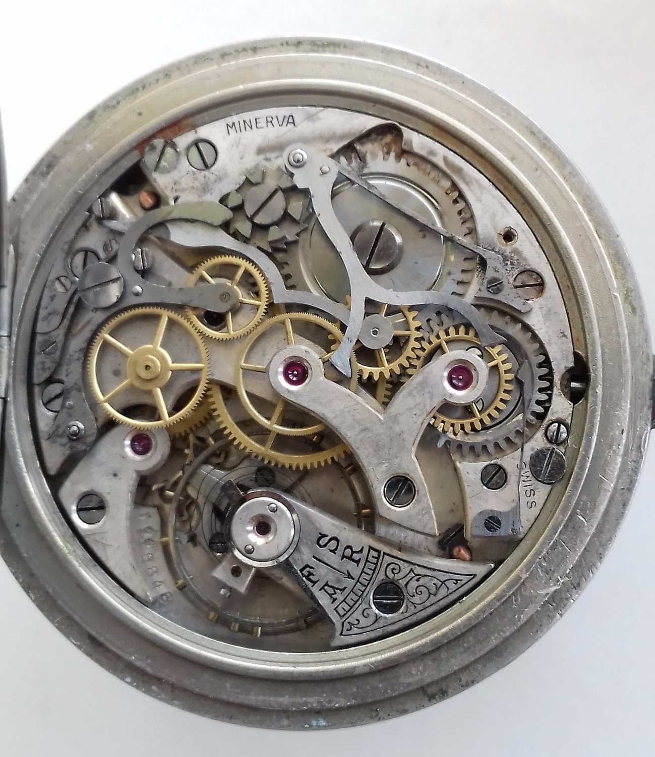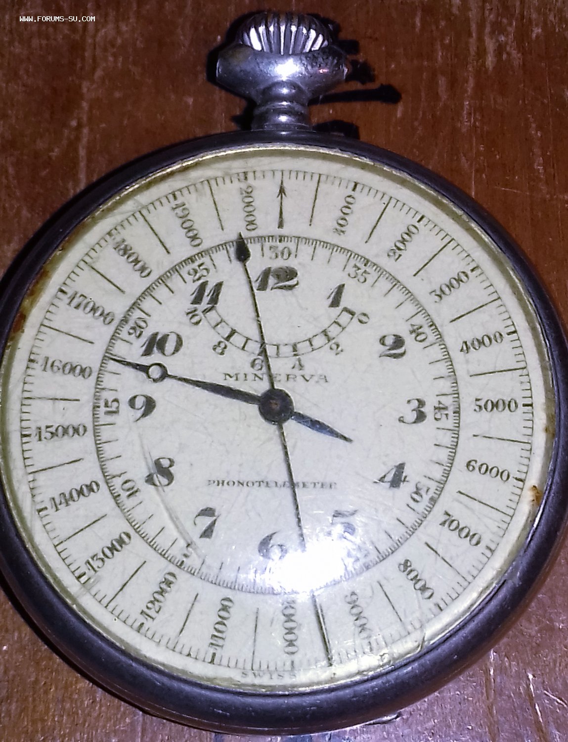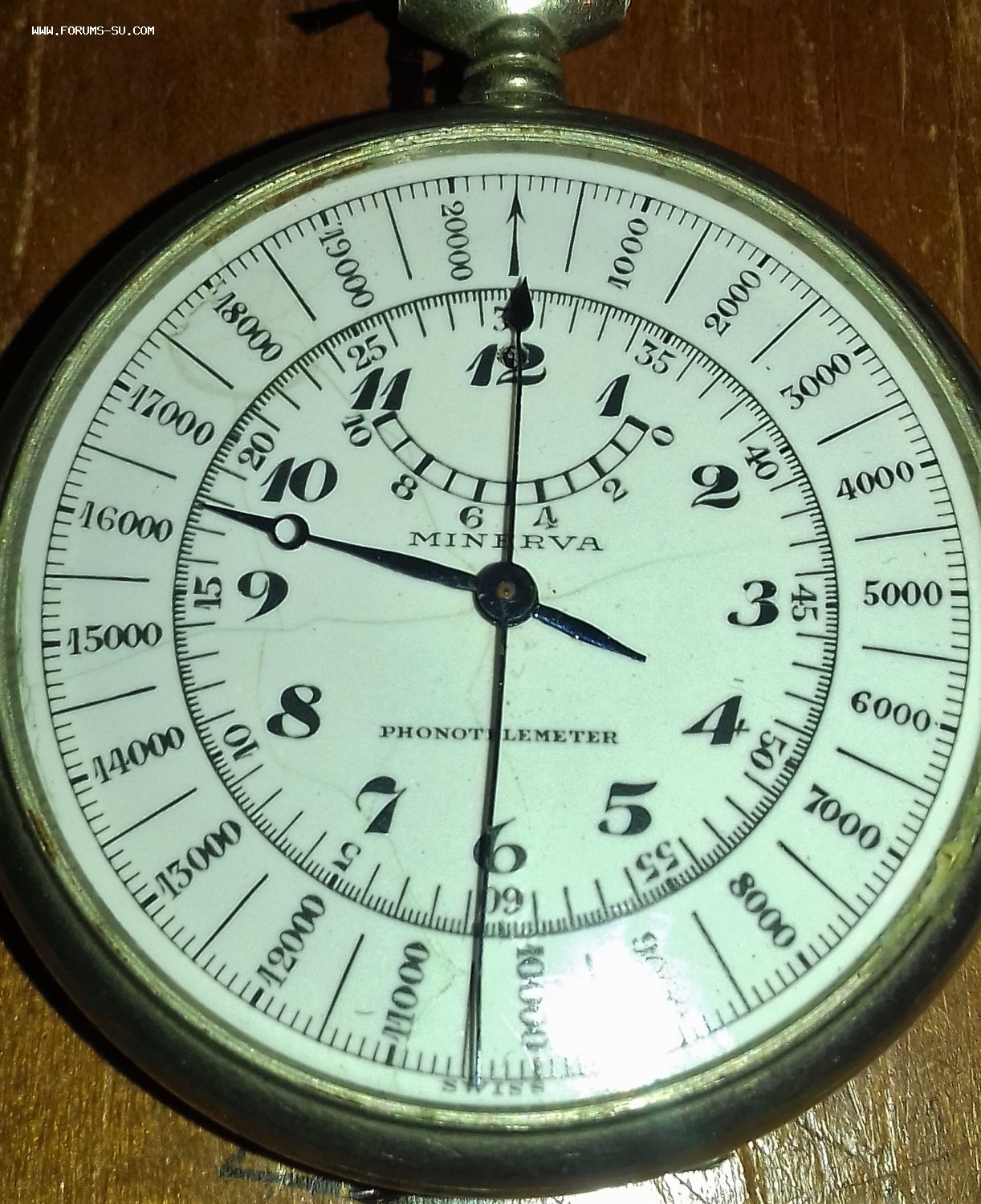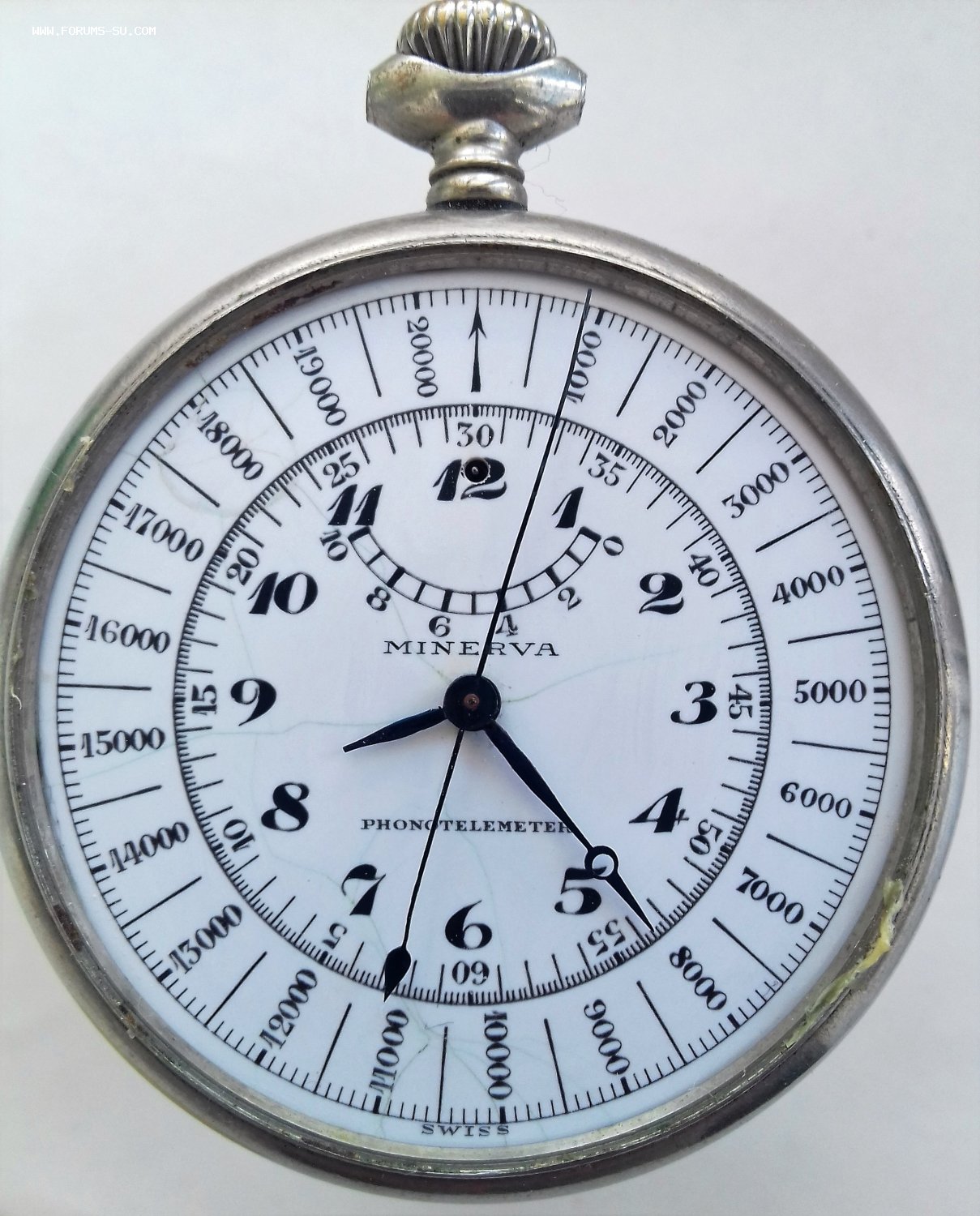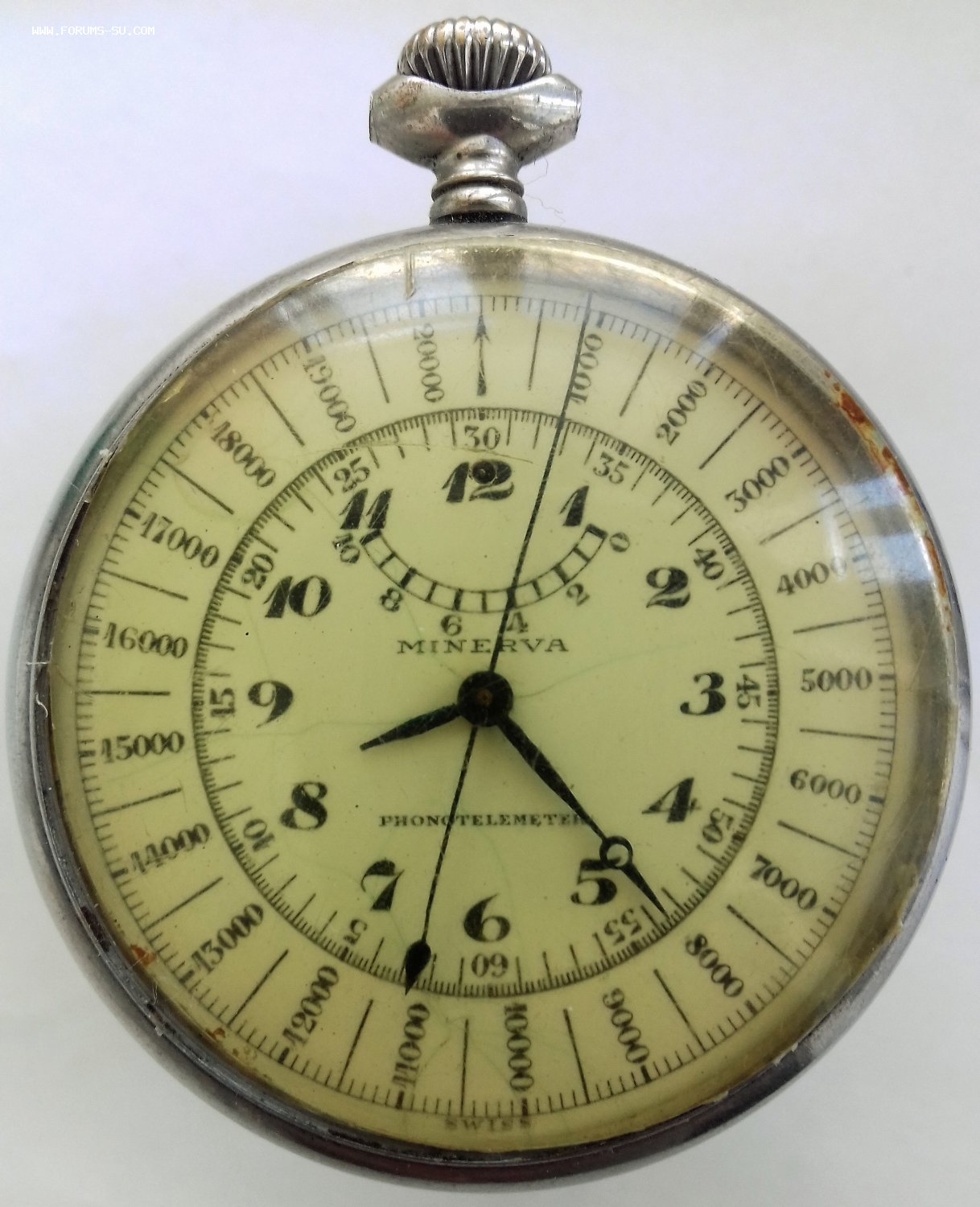 Minerva Phonotelemeter. Артиллерийский секундомер. Родной футляр. Ось баланса цела. Волосок целый, но памятый. Циферблат в паутинке. МПЦ по ходу предложений.