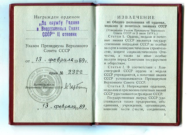 За службу Родине 2ст с документом uvf53 - 14 апр 2018 21:48.33 × Мини профиль пользователя uvf53 Сообщения: 10211 Зарегистрирован: 17 мар 2011 17:50.57 Статус: Не в сети - 14 апр 2018 21:48.33 #6209724 Лицевую страницу Орденской книжки покажите с ФИО и её №.