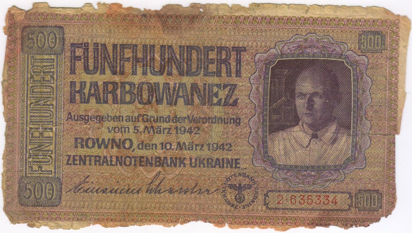 500 карбованцев 1942 г оккупация.