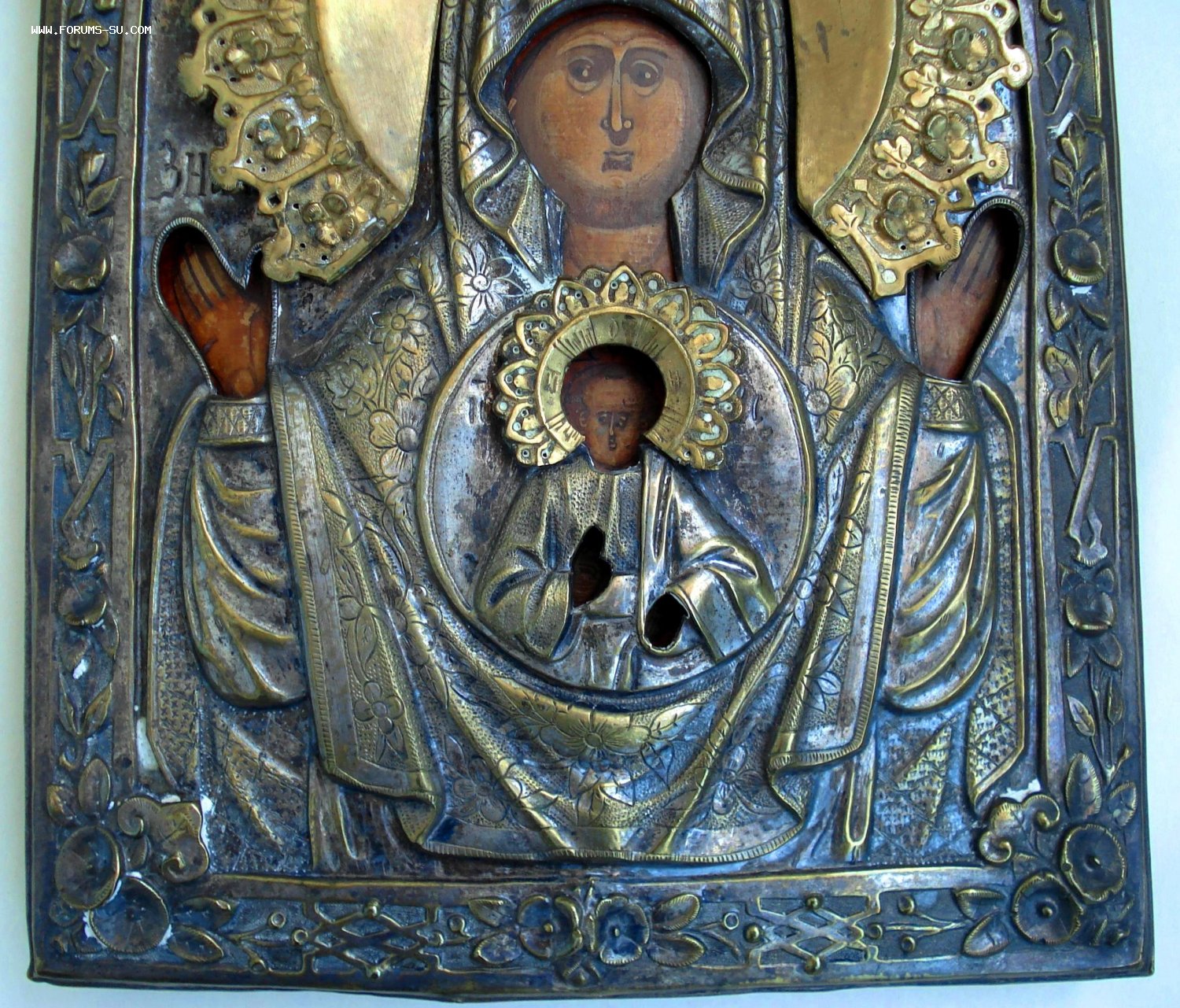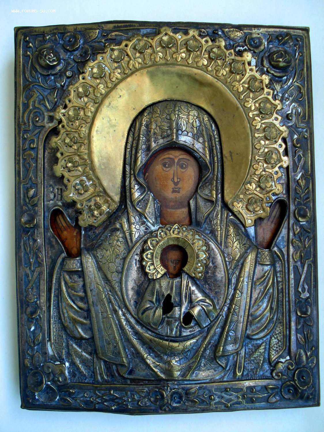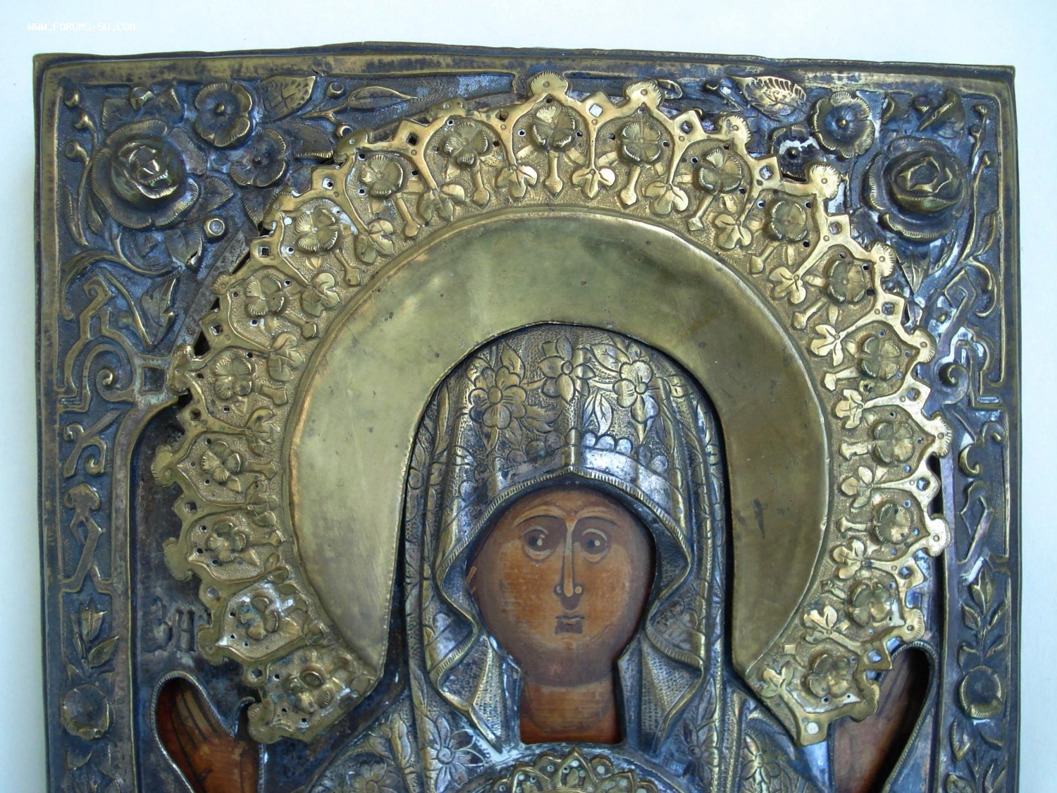 Венец и оклад не закреплены. Размеры 22 на 18 см.