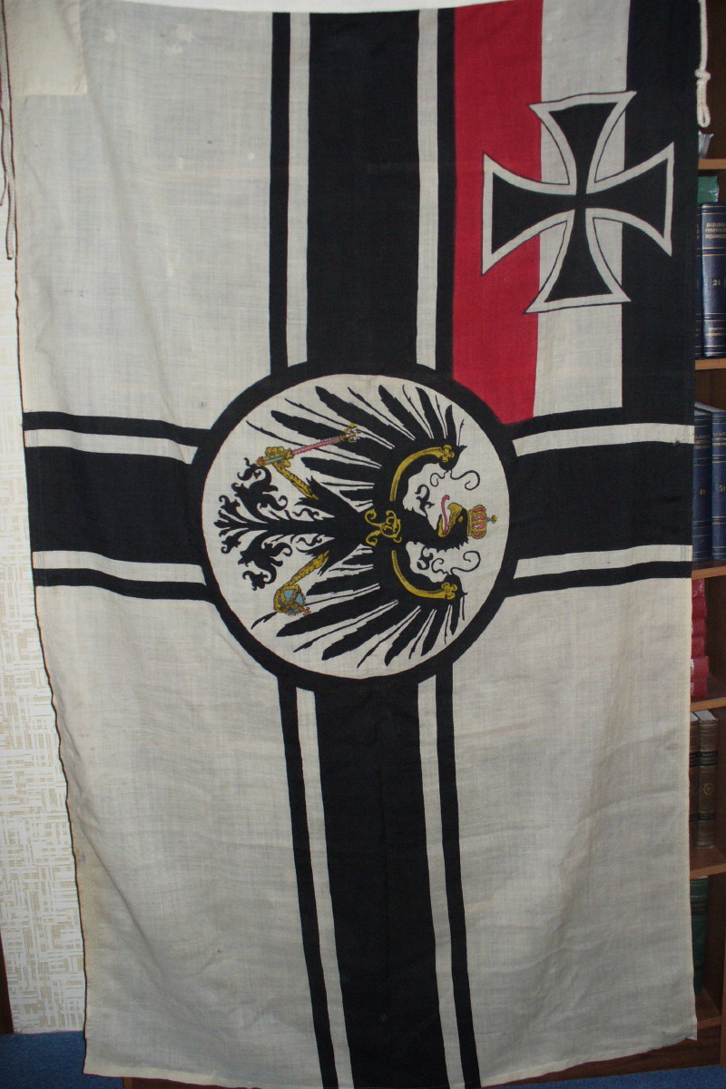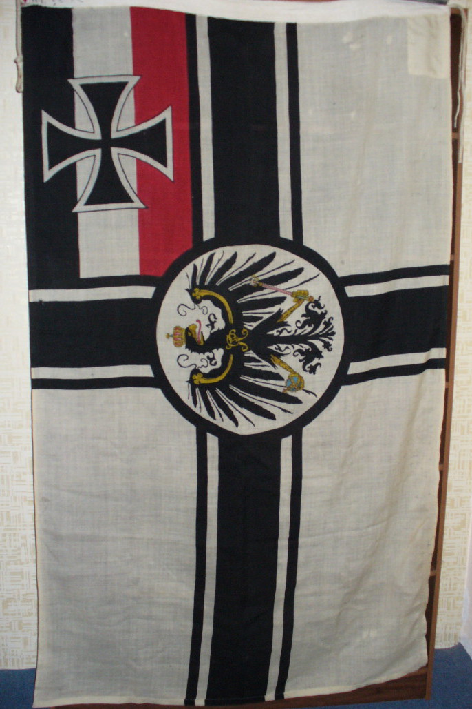 Флаг Кайзерлихмарине (нем. Kaiserliche Marine, Императорские военно-морские силы) обр.1903-1919г. Состояние хорошее, размер 1.2х2 м. имеется неколько штопок и несколько небольших дырочек. Материал шерстяное сукно. Оригинал. Цена 20 т. руб Пересыл по РФ. Почта на покупателе.