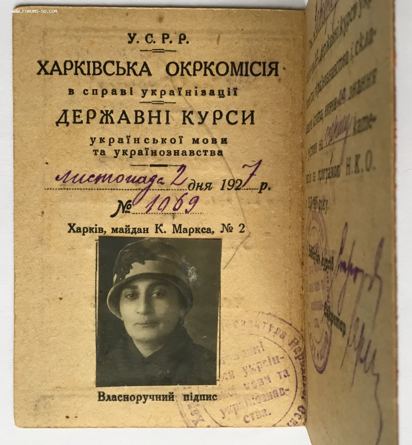 Наглядное свидетельство от 1927г. Харьковская окркомиссия по делам «украинизации».