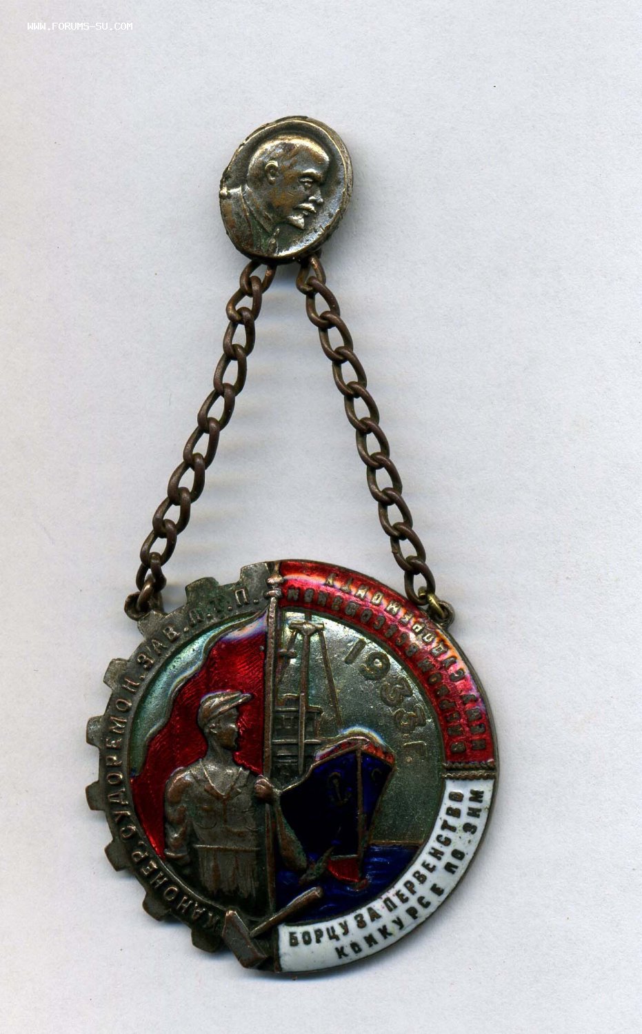 На знаке написано с одного бока " Борцу за первенство в первом всесоюзном конкурсе по зимнему судоремонту.1933 год."