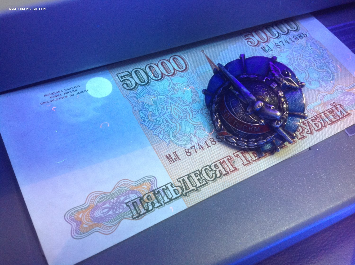 В уф знак не светится. Даю доп фото под уф лучами и на свежем воздухе.