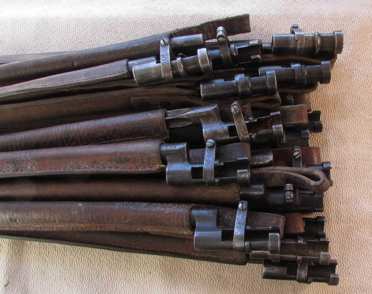 Все отличные. Склад, арсенального хранения. Ножны - кожа. 17 шт.