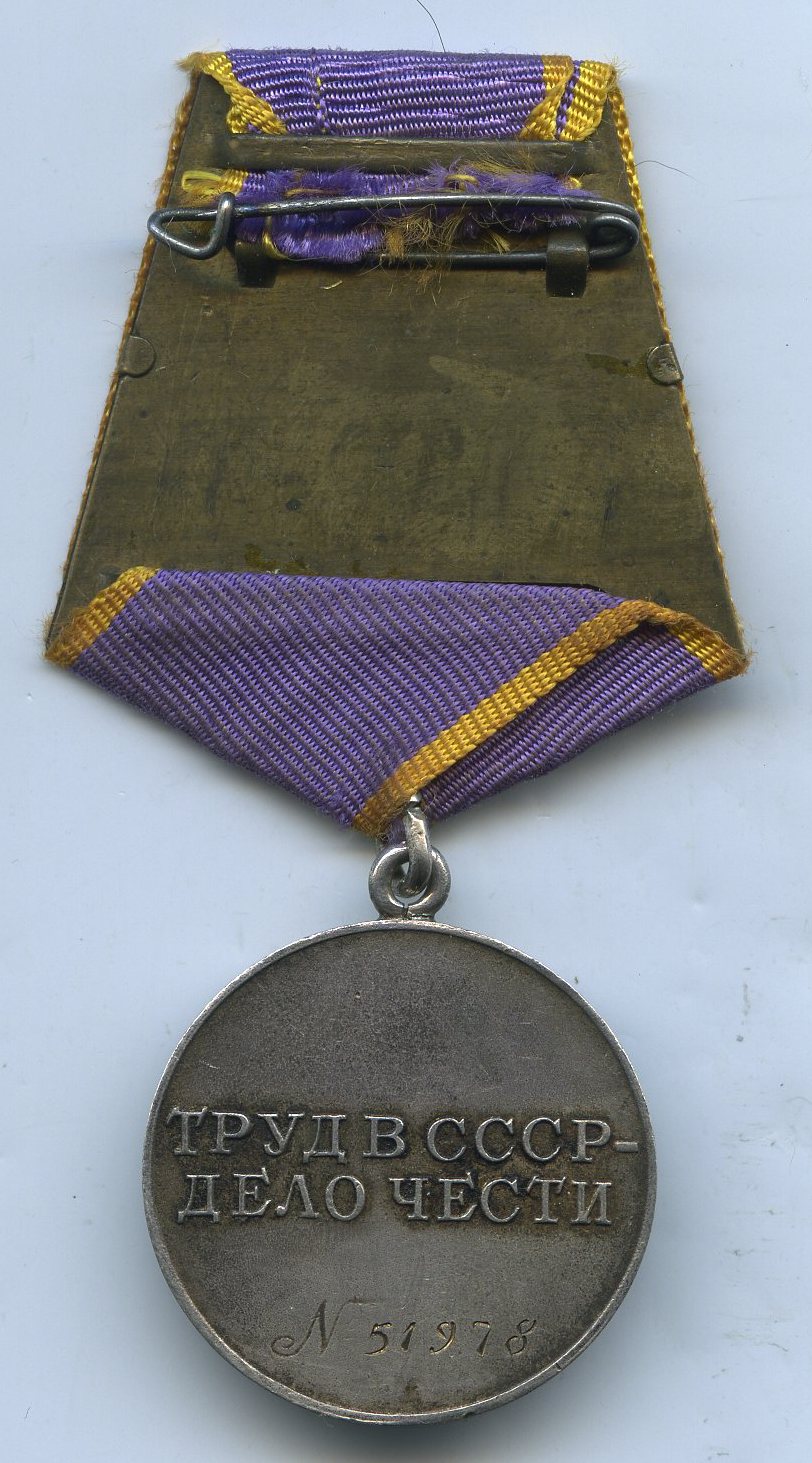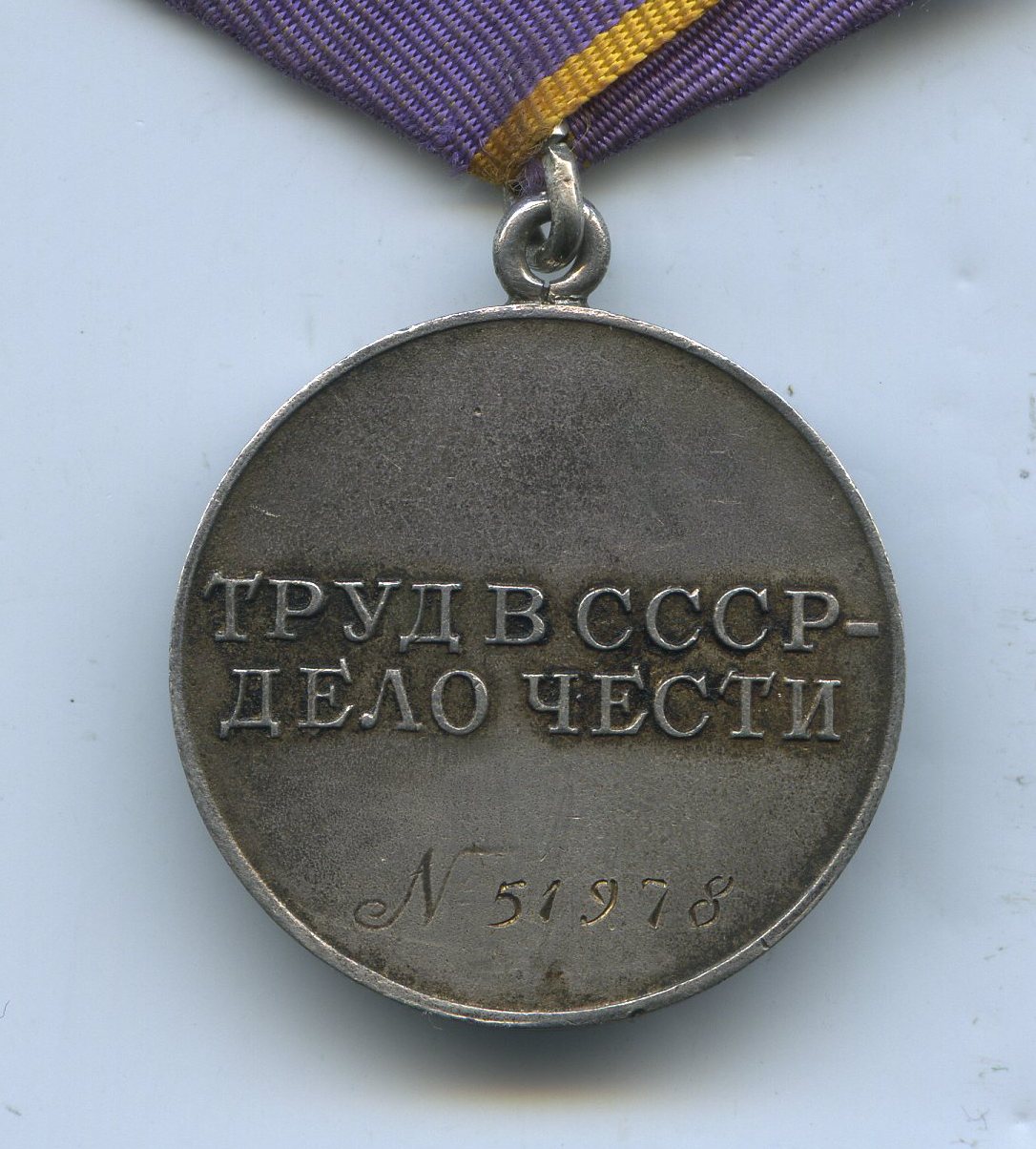 Медали Серп и Молот, За Трудовую Доблесть, За Трудовое Отличие, За Доблестный Труд в Великой Отечественной Войне,За Восстановление Предприятий Чёрной Металлургии Юга, За Восстановление Угольных Шахт Донбасса, За Освоение Целинных Земель, За Строительство БАМ, За Преобразование Нечерноземья РСФСР, За Освоение Недр и Развитие Нефтегазового Комплекса Западной Сибири, Ветеран Труда