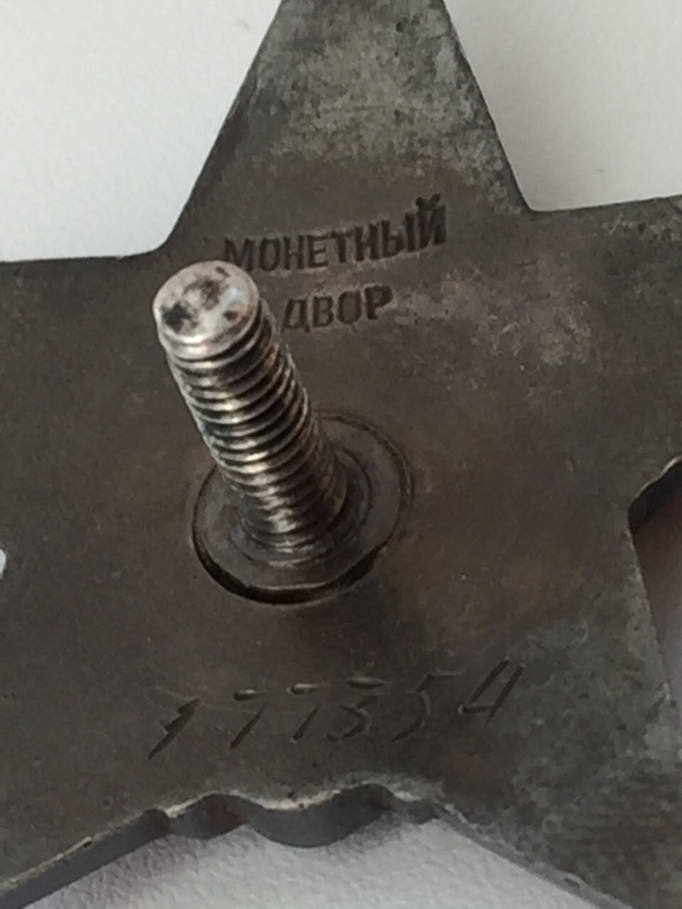 Длинный винт, родная серебряная гайка, эмали родные целые со следами бытования. Есть пробивка.