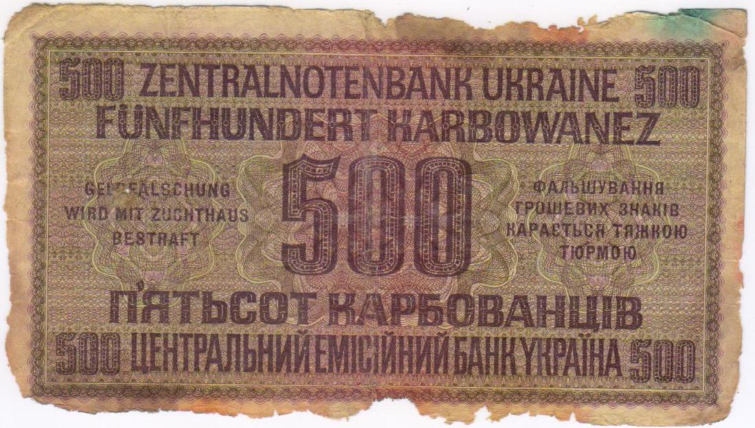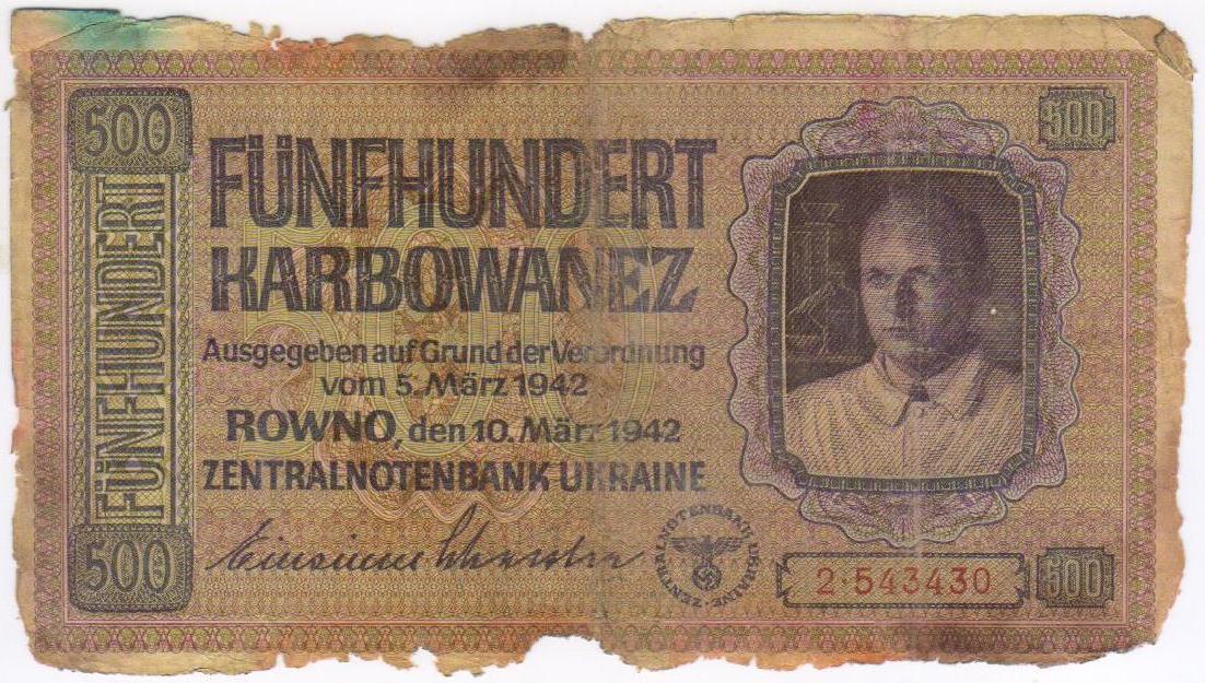 500 карбованцев 1942 г оккупация.