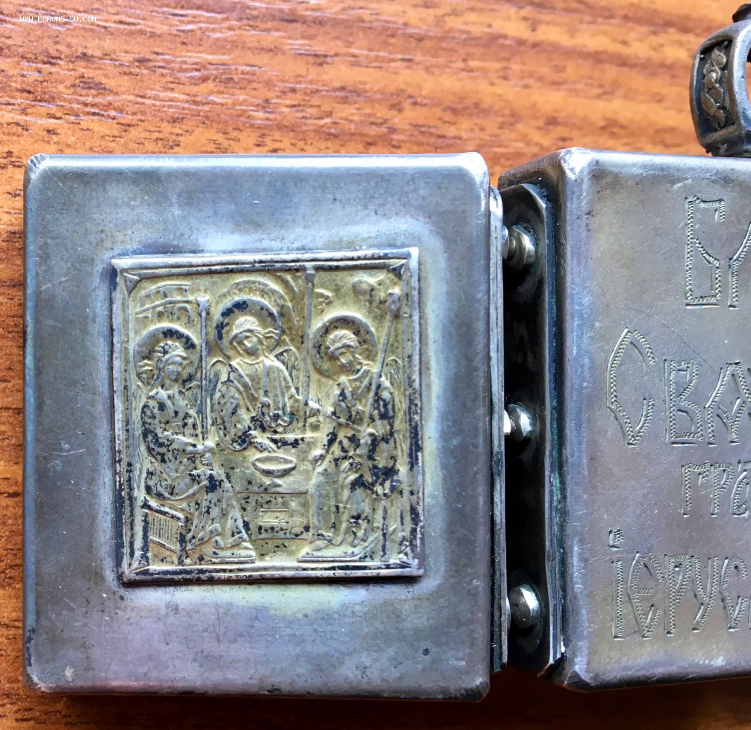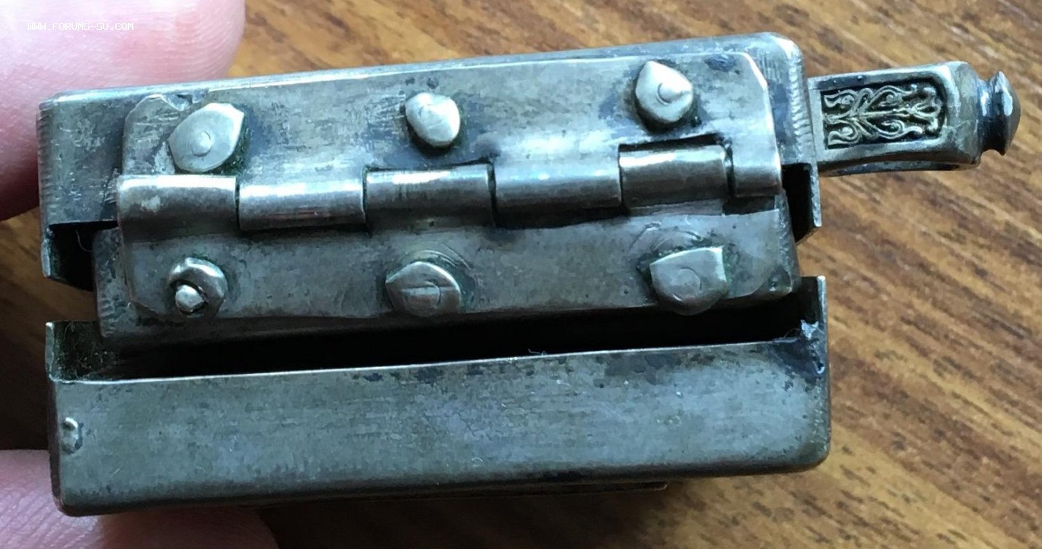 Непонятка вот в чем.. Клеймо вроде 84-ка. Но серебро не пахнет. А складишок имеет запах металла. Толи складень частично из серебра, а частично из простого металла, толи ХЗ. Размер складня в закрытом виде со спичечный коробок.