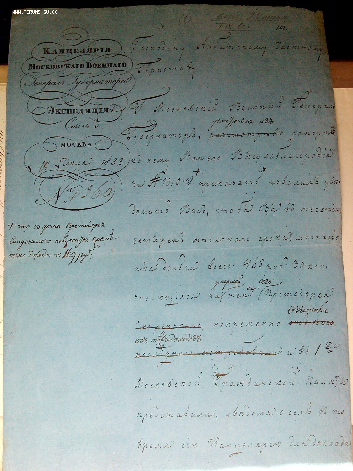 приставу арбатскому на исполнение из канцелярии генерал губернатора Москвы 1832 год