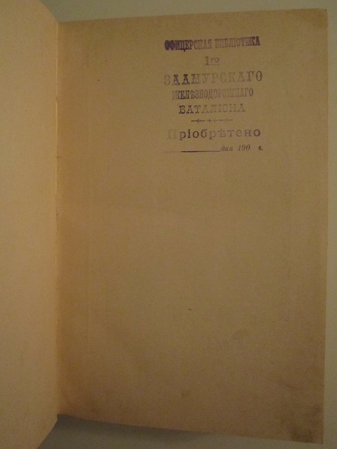 Есть несколько печатей "Офицерская библиотека 1-го Заамурского железнодорожного батальона".
