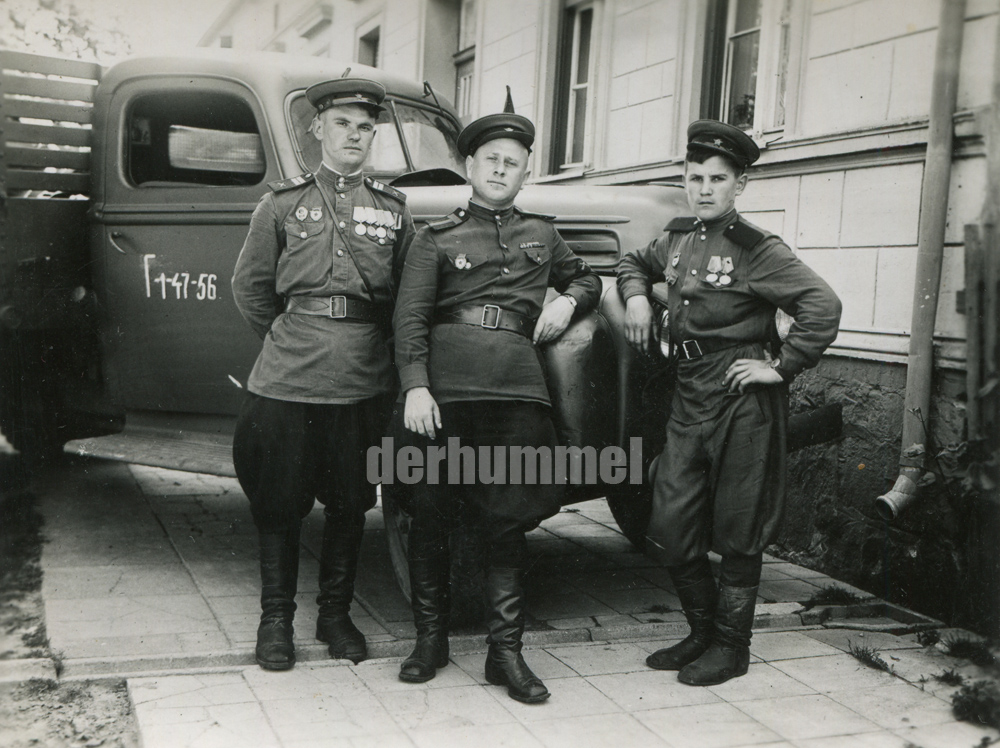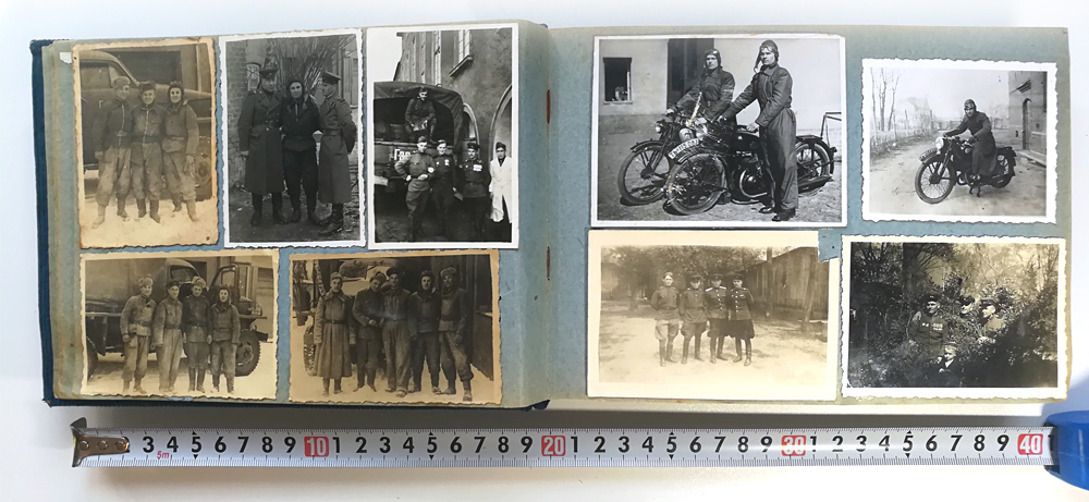 Из них 33 фотографии с нарукавной нашивкой «истребителей танков», грузовики Ford G8T, Studebaker US6, мотоциклы DKW KS 200 с номерами Тюрингии, NSU и Zündapp DB 200.