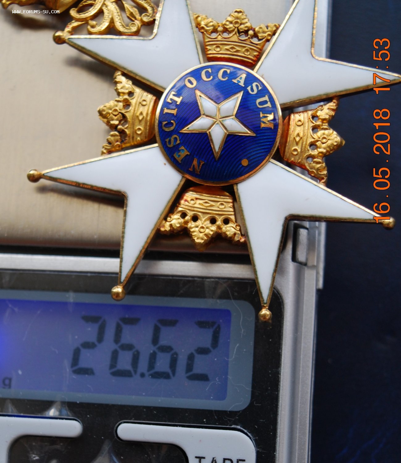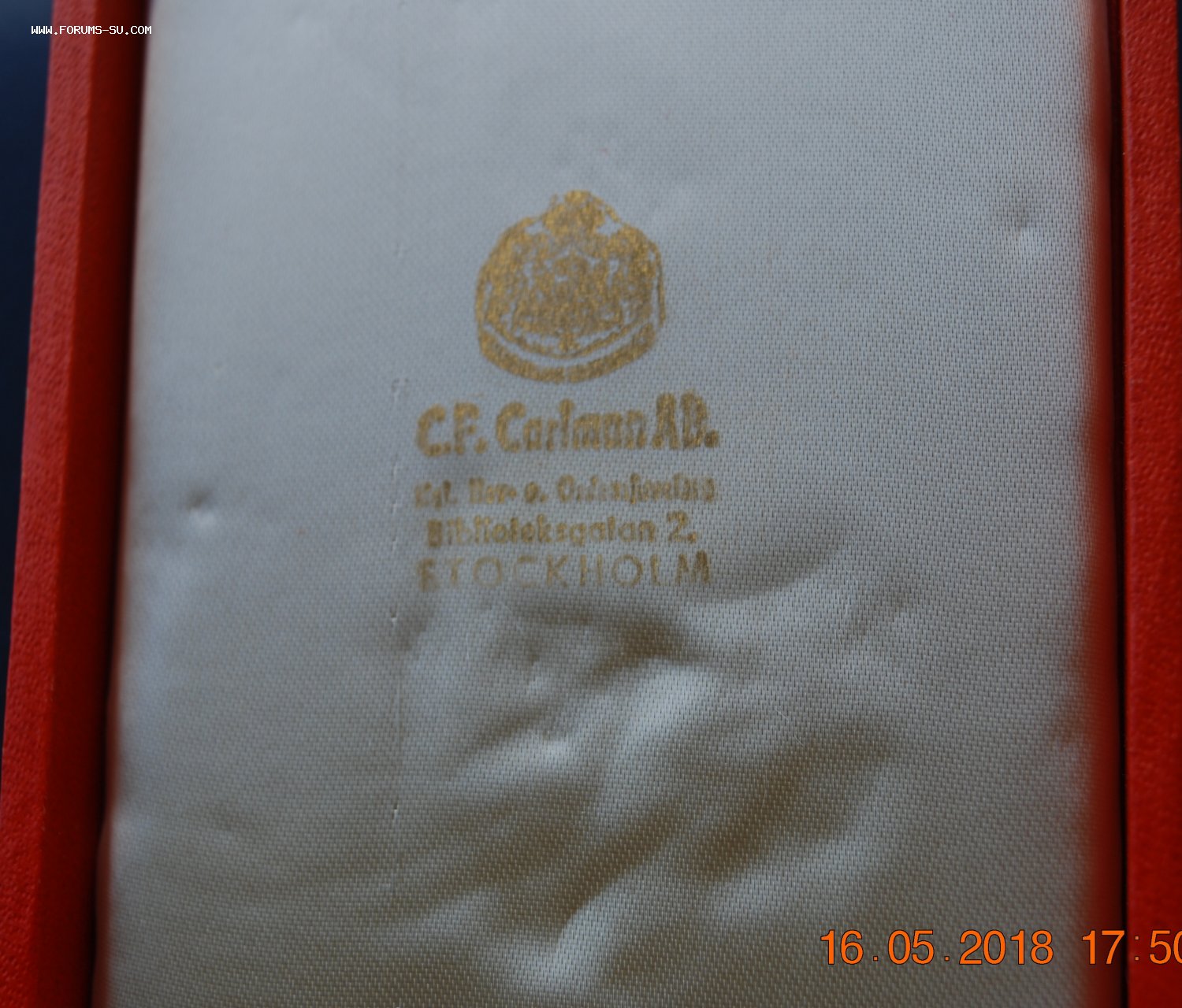 Мастерская «C.F. Carlman», Стокгольм. Золото 18 карат, эмаль. Размер 85×55 мм. Вес 26,62 г. С оригинальной лентой и в оригинальной коробке.