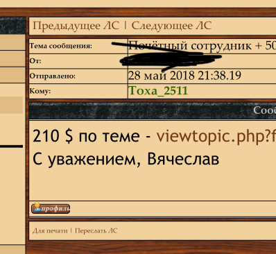 Почётный сотрудник + 50 лет КГБ. cwikom - 30 май 2018 07:16.58 × Мини профиль пользователя cwikom Сообщения: 1308 Зарегистрирован: 13 июл 2010 16:23.37 Откуда: г.Москва Статус: Не в сети - 30 май 2018 07:16.58 #6225526 230