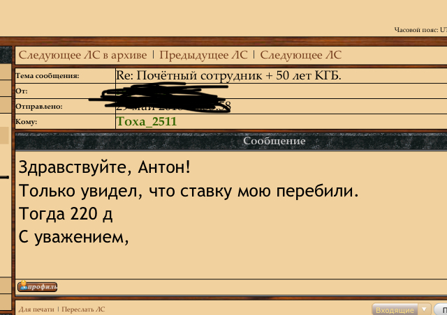 Почётный сотрудник + 50 лет КГБ. Тоха_2511 - 26 май 2018 14:49.20 × Мини профиль пользователя Тоха_2511 Сообщения: 2630 Зарегистрирован: 05 апр 2011 22:14.46 Статус: Не в сети - 26 май 2018 14:49.20 #6224389 МПЦ - 200$Добавлено B 08:11 28.05.2018:МПЦ получено в л.с.Окончание по ставке не перебитой двое суток. Шаг 10$ и больше.