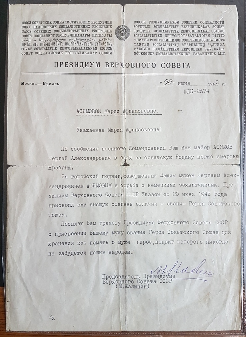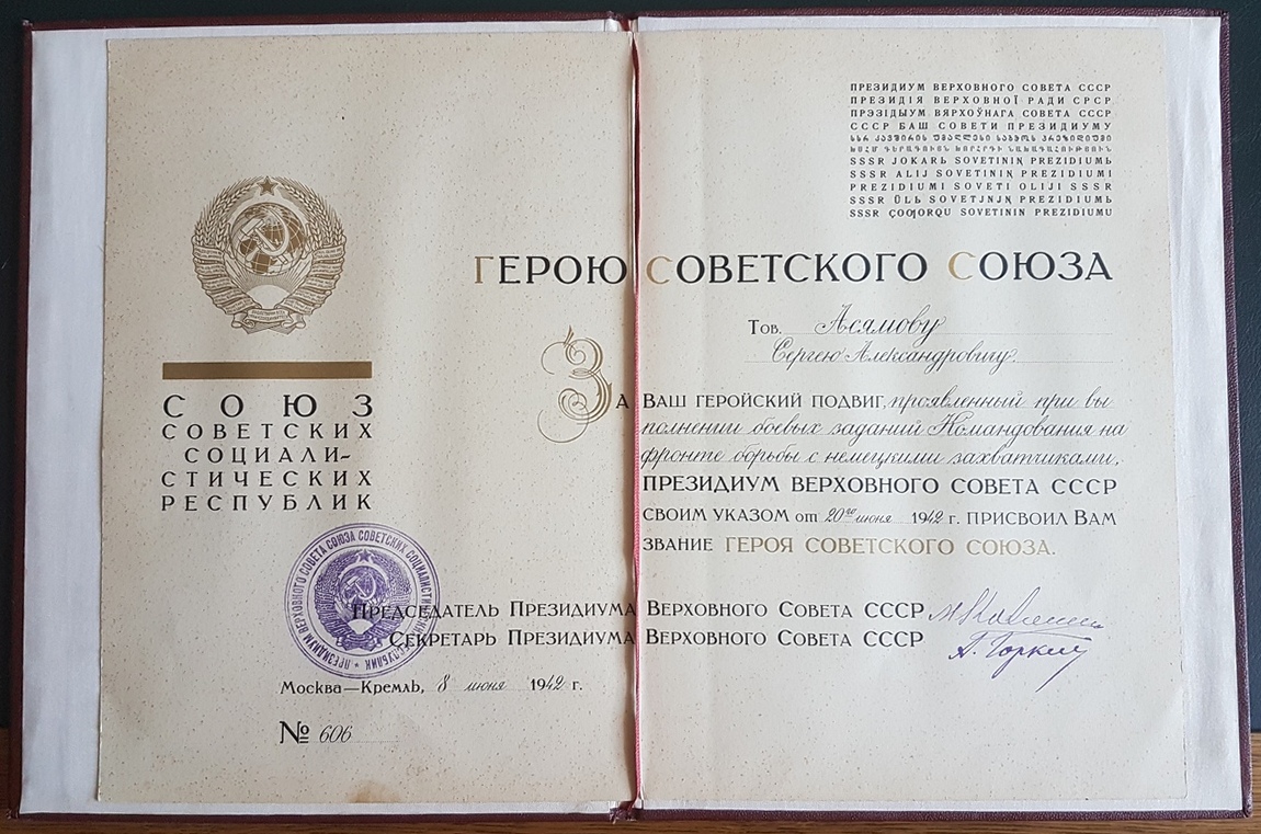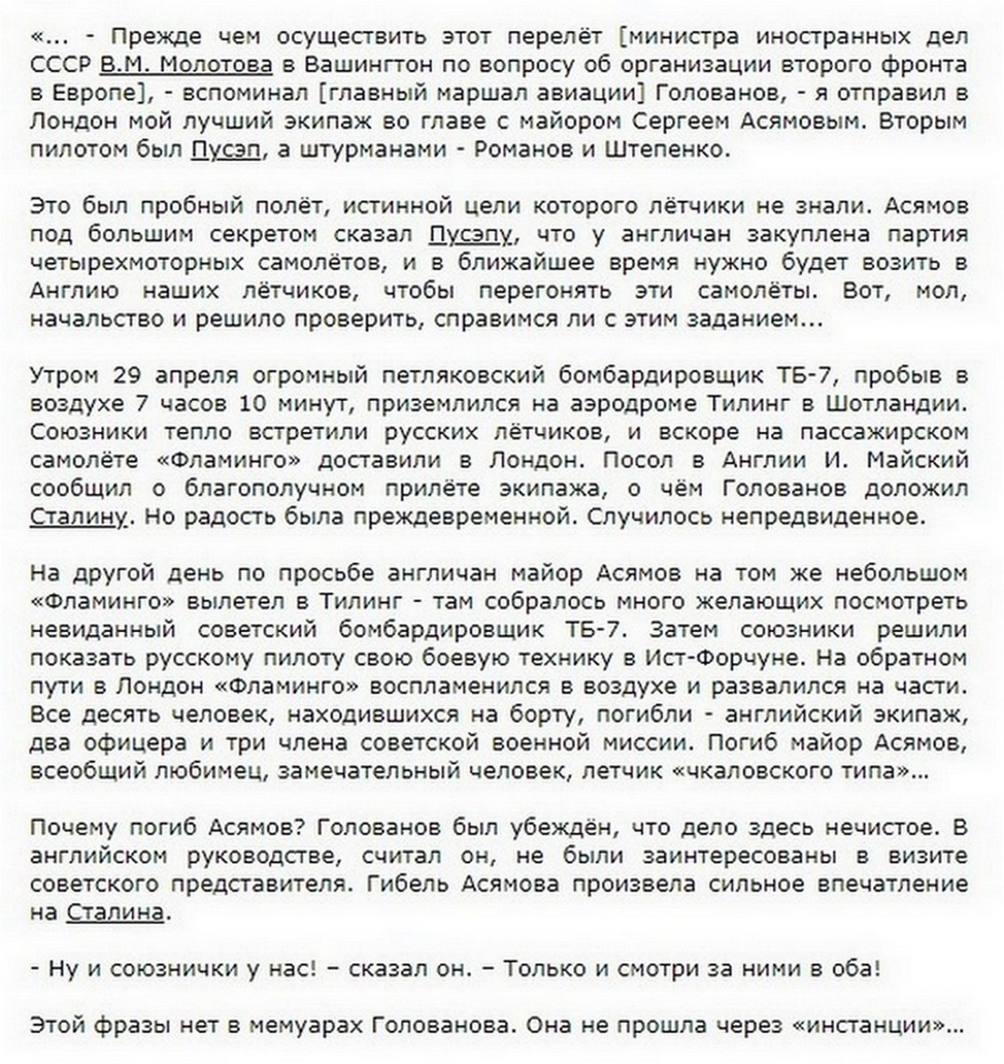 Кавалер Асямов Сергей Александрович: http://www.warheroes.ru/hero/hero.asp?Hero_id=2385, именно он должен был возглавить экипаж самолета для полета Молотова в Великобританию, но трагически погиб в Англии при пробном полете, за что и получил звание ГСС посмертно: https://aeroplan2010.mirtesen.ru/blog/4 ... .-1942-god