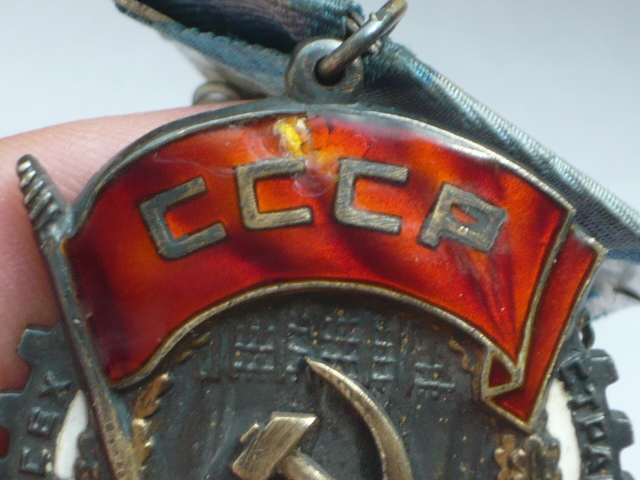 Есть пластинчатый скол на знамени. между второй и третьей буквой "С"
