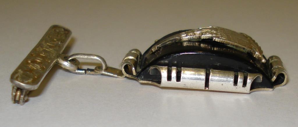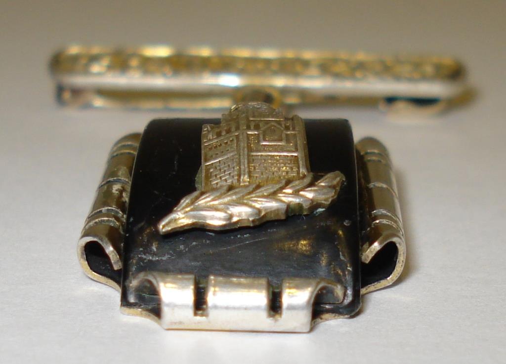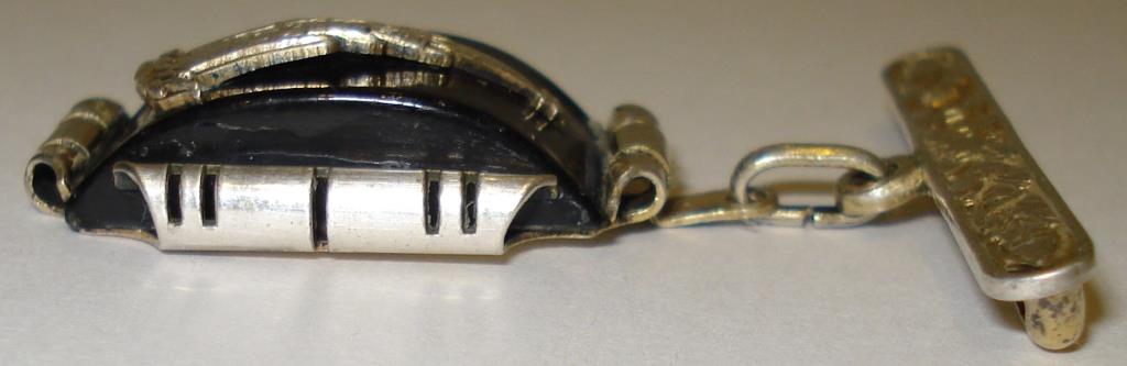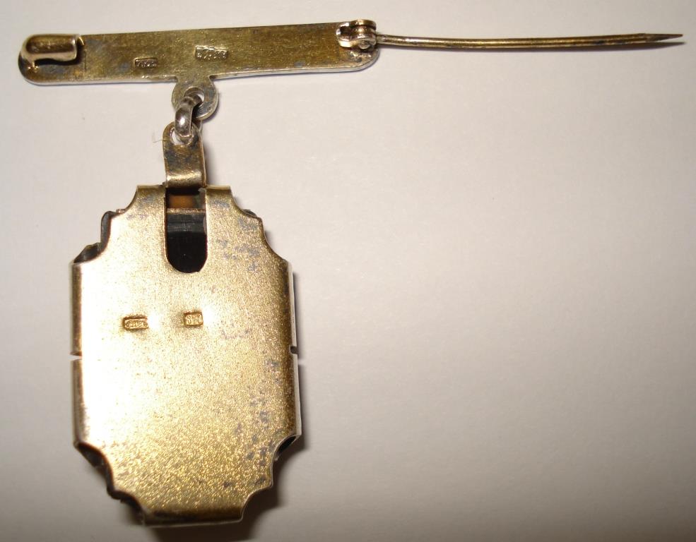Черный камень, серебро, позолота, булавка.