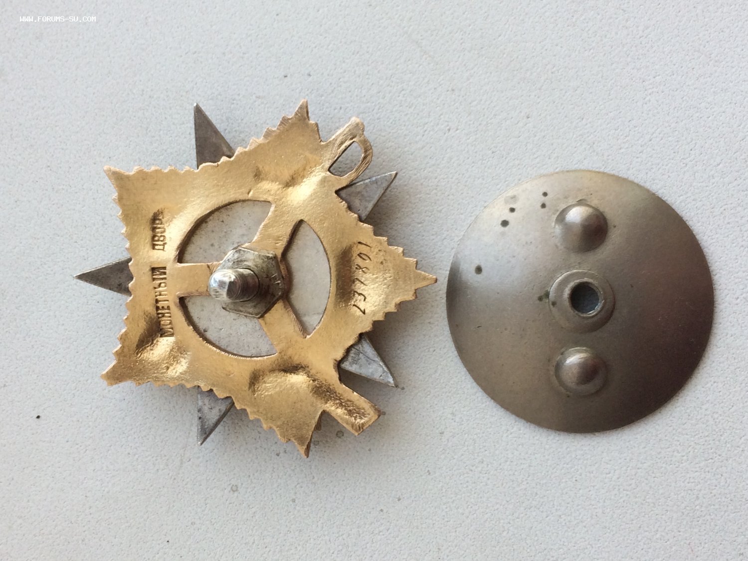 Состояние очень хорошее ! Эмали без сколов и чешуек ,винт в норме . Гайка родная и сидит плотно на резьбе .Есть маленькая царапка на луче на 5 часов ,но на фото её невидно .Пробивки нет .