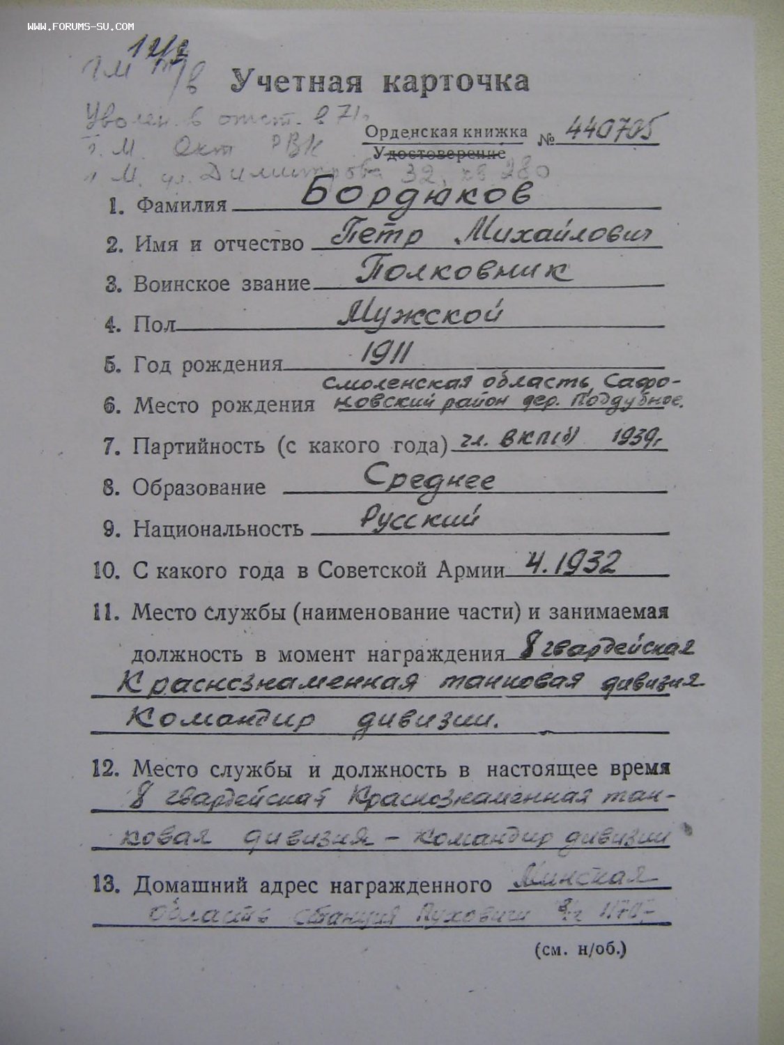 Кавалер Бордюков Петр Михайлович