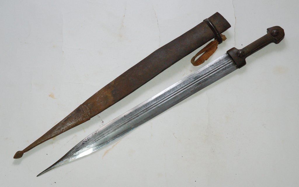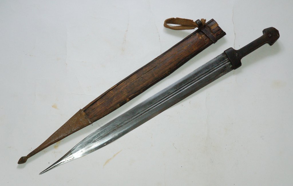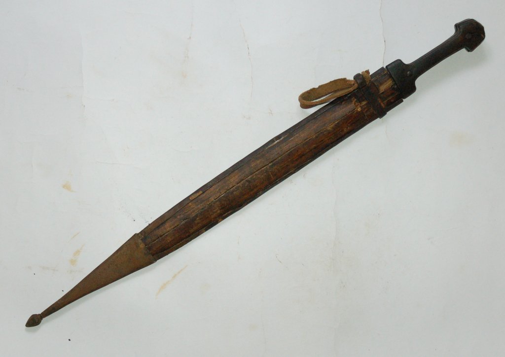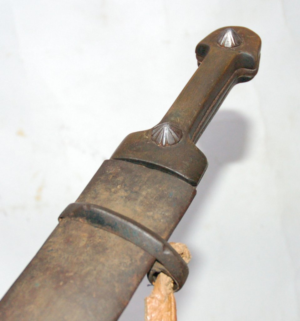 Ножны с лицевой стороны в металле, с обратной дерево.