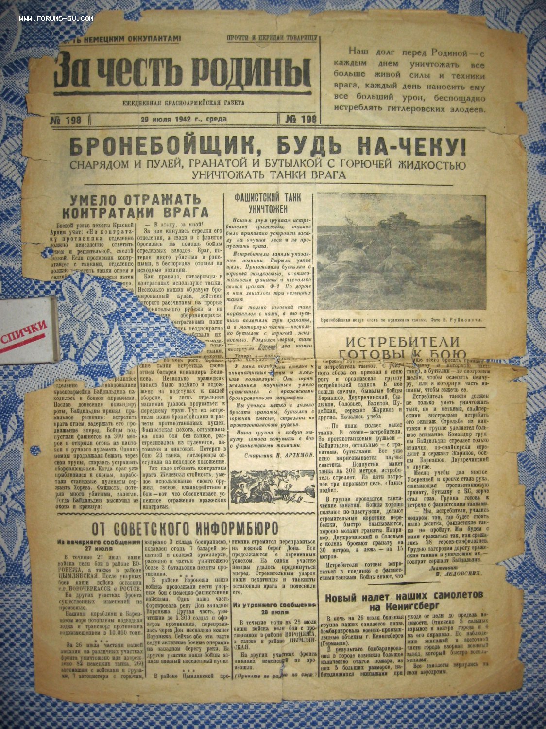 - "За честь Родины". № 198. 29 июля 1942 г.