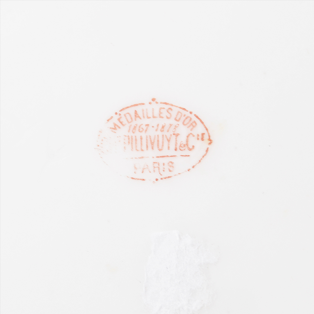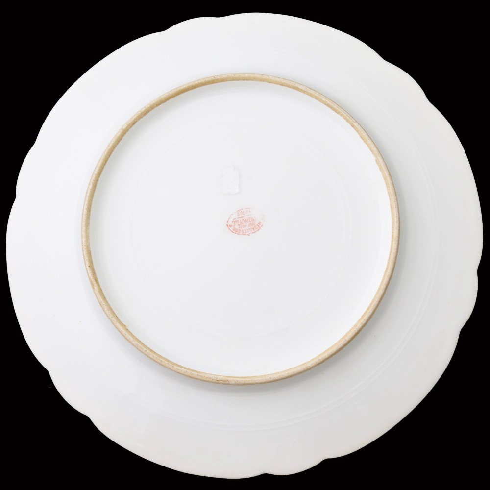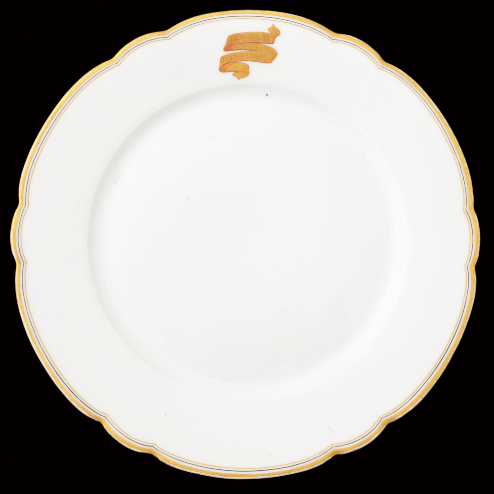 Судя по форме и отделке, она входила в сервиз кают-компании. Тарелка выпущена весьма известной французской фирмой Шарля Пилливуи (Charles Pillivuyt), основанной в 1854 г. и в 1860 – 1878 гг. неоднократно награждавшейся золотыми медалями Парижской выставки. Посуда под данной торговой маркой выпускается до настоящего времени и позиционируется как «фарфор для королей и королев»; что же касается старинной посуды фирмы, то она весьма высоко ценится на антикварном рынке. Судьба сервиза после вывода крейсера в 1911 г. из боевого состава флота неизвестна. Можно лишь предположить, что он, по существовавшей в то время практике, был продан с торгов как ненужное имущество. Предметы посуды из кают-компаний судов Российского Императорского флота в наши дни практически не встречаются, данная же тарелка представляет собой особую редкость по причине иностранного происхождения и малочисленности экипажа крейсера. Гарантия подлинности.