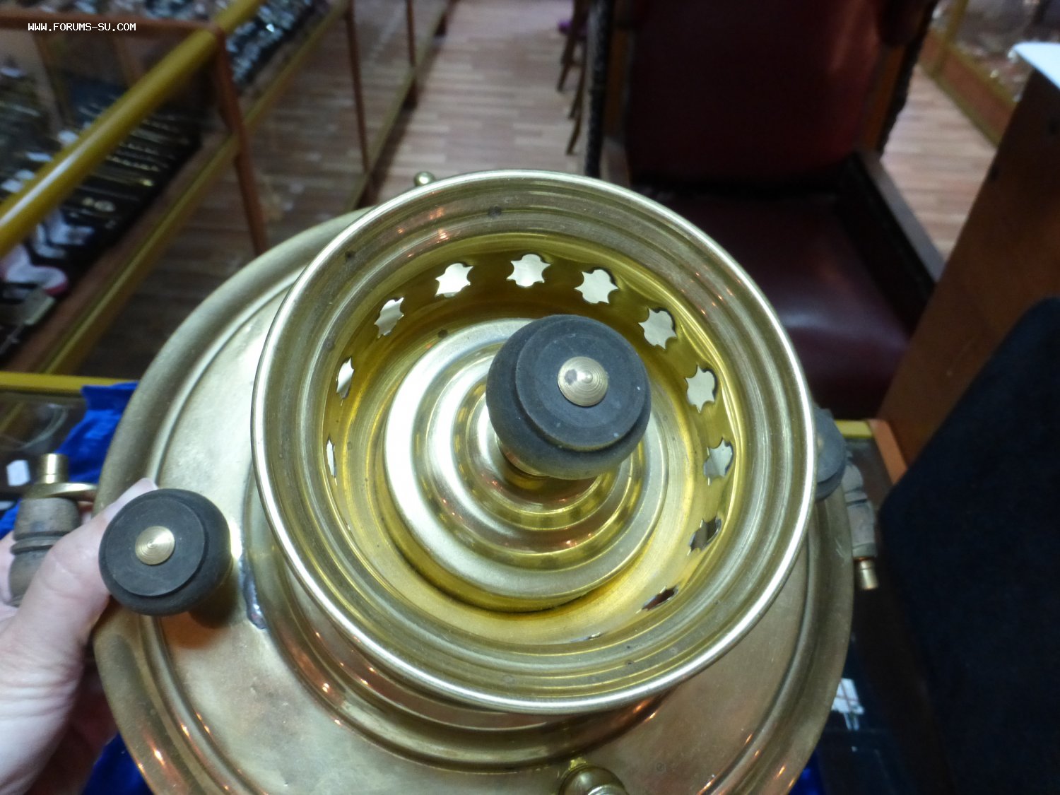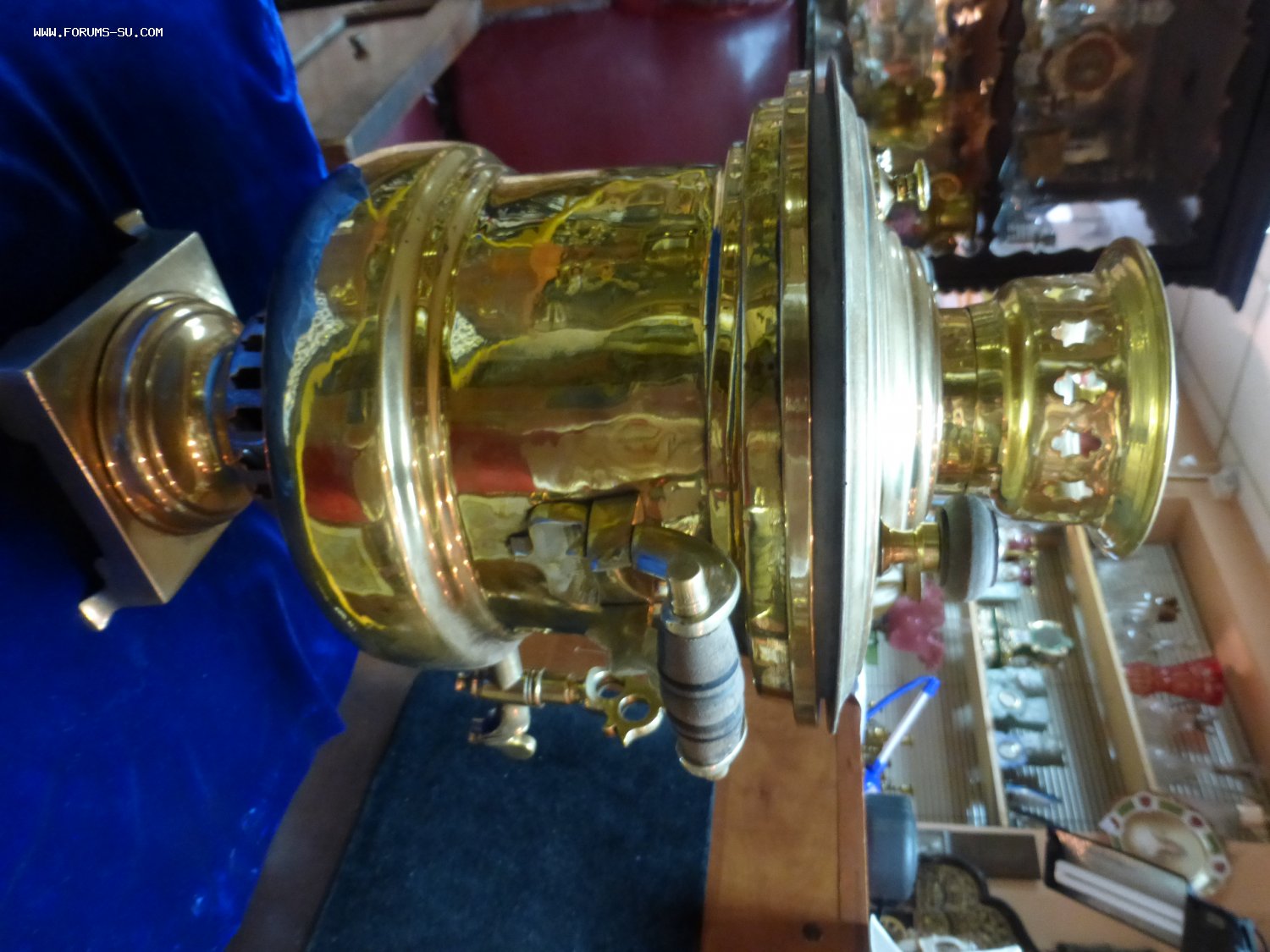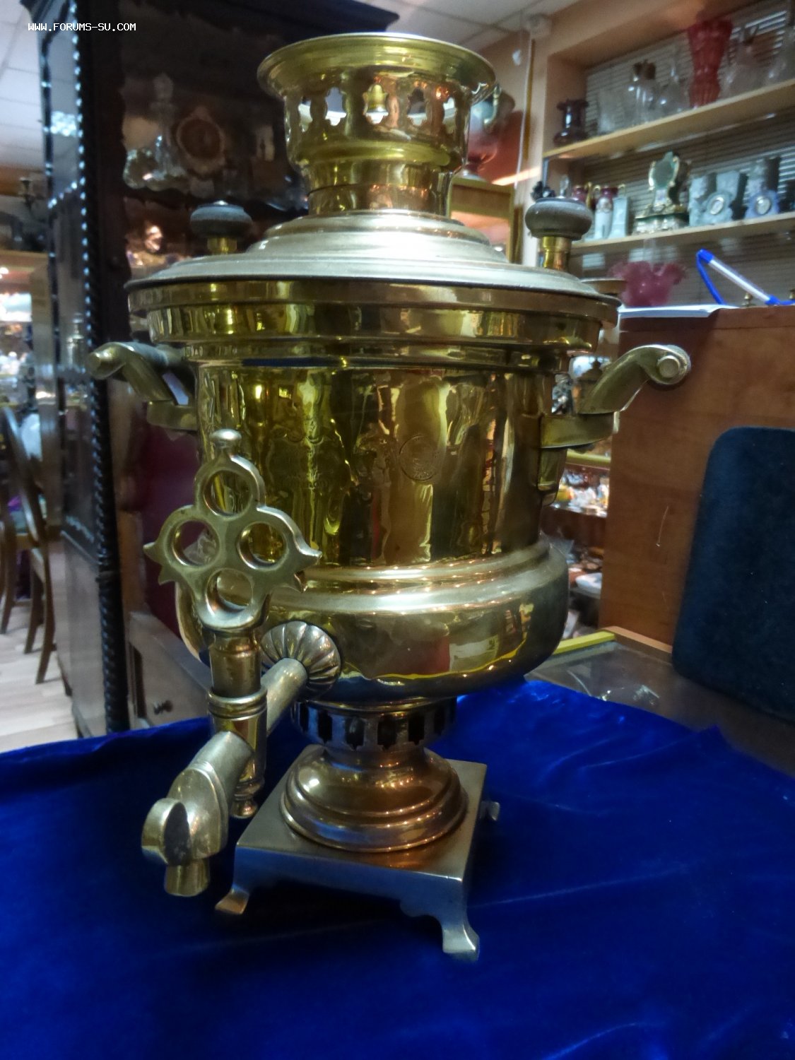 Самовар после реставрации. Можно использовать. Латунь. Высота 43 см, ширина с краном 30 см. Цена 25000 р.