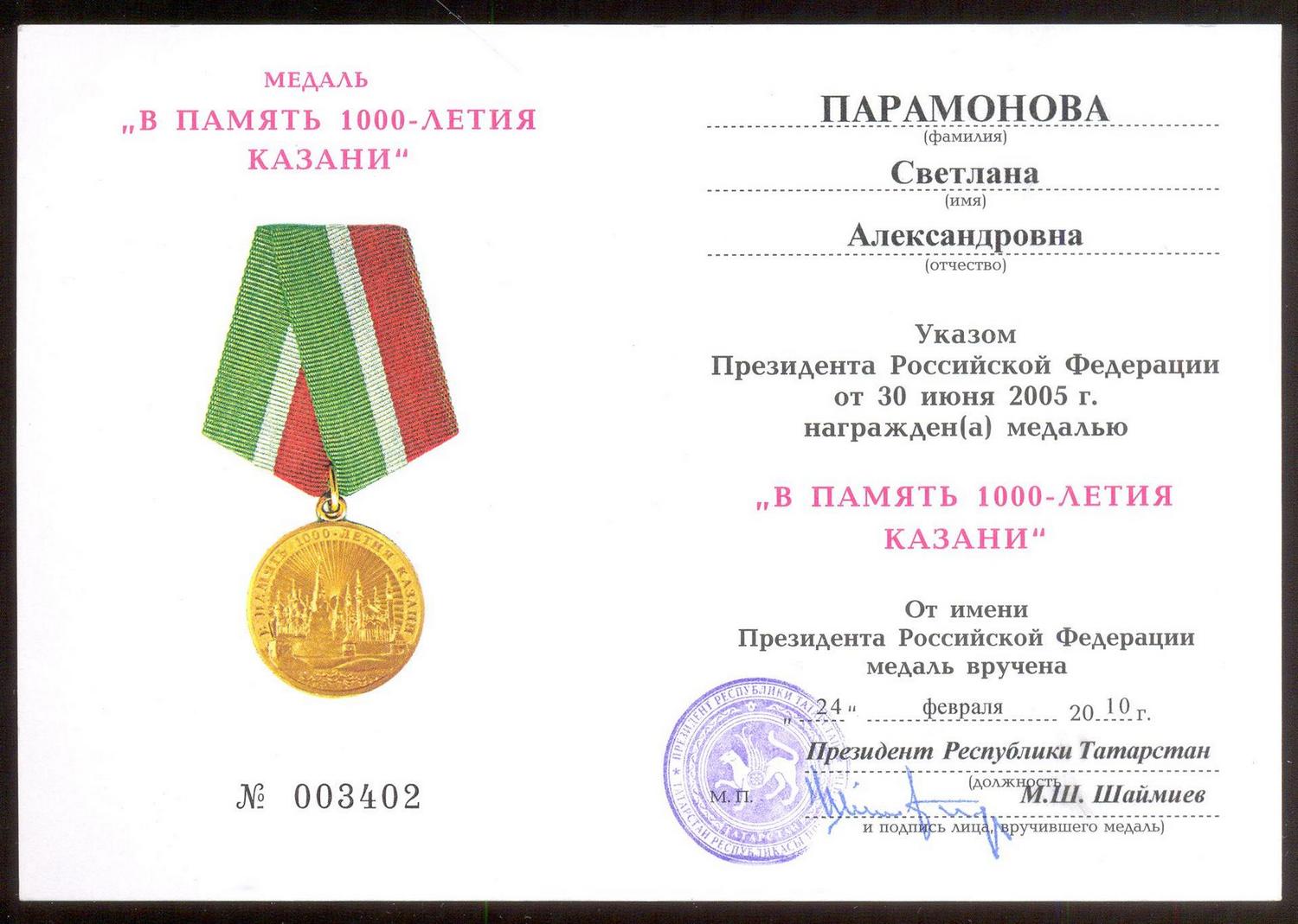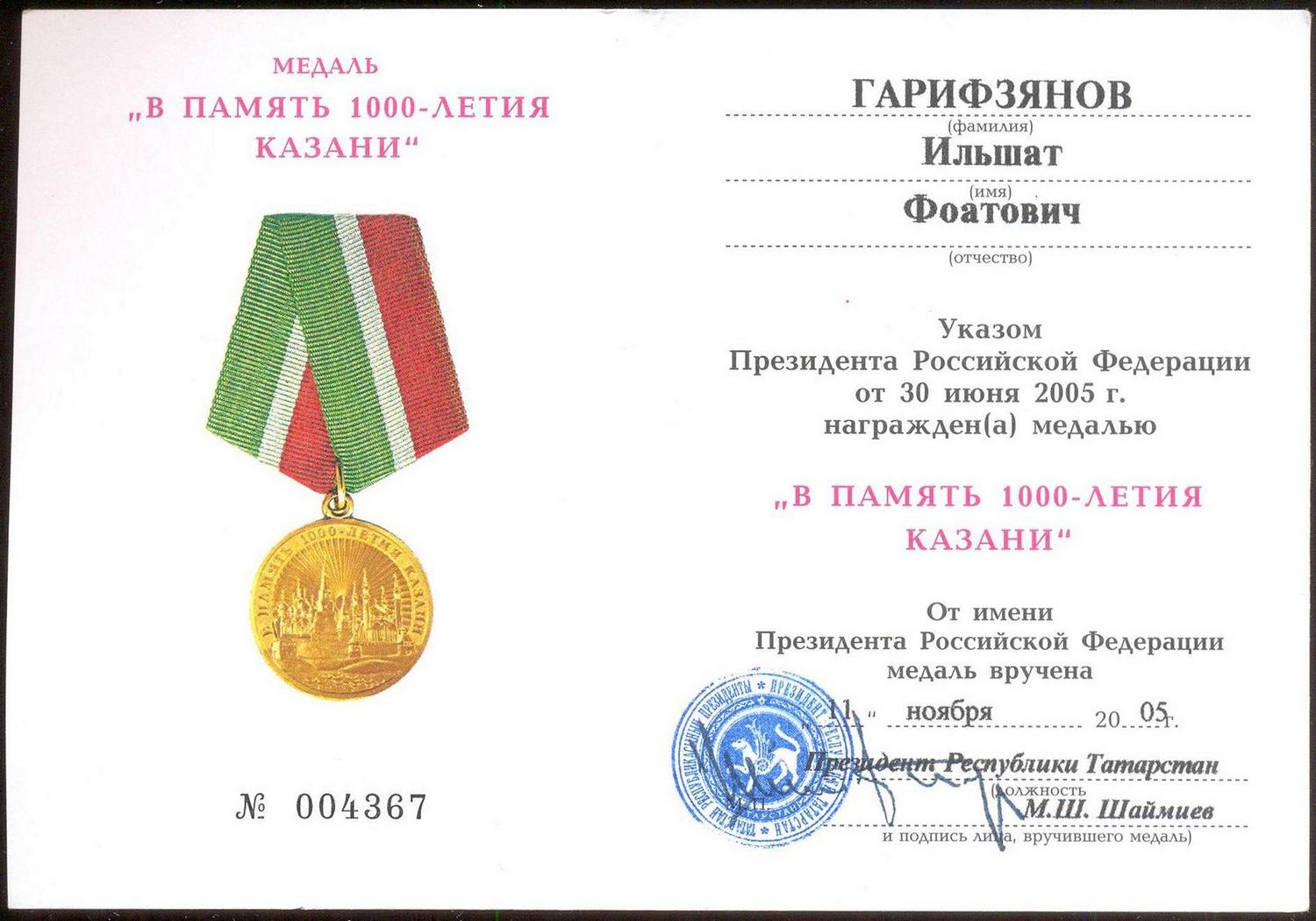 С подписью Президента РТ самый редкий считается, только "выдающимся" сам подписывал!