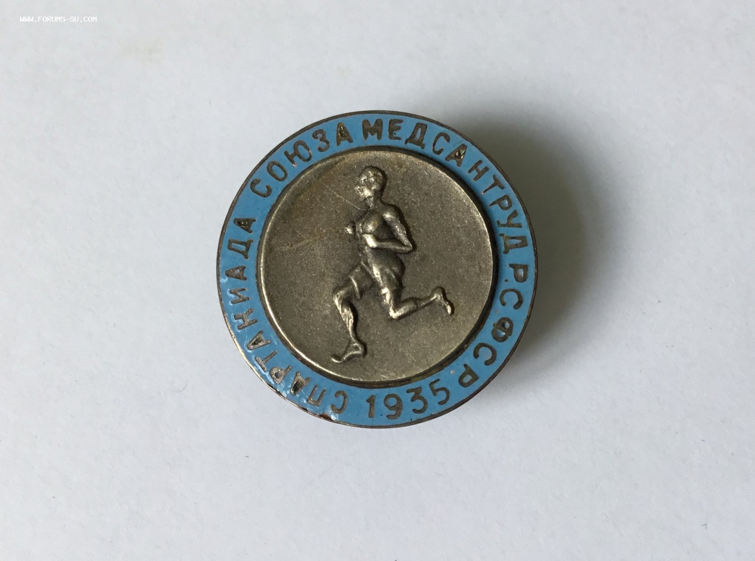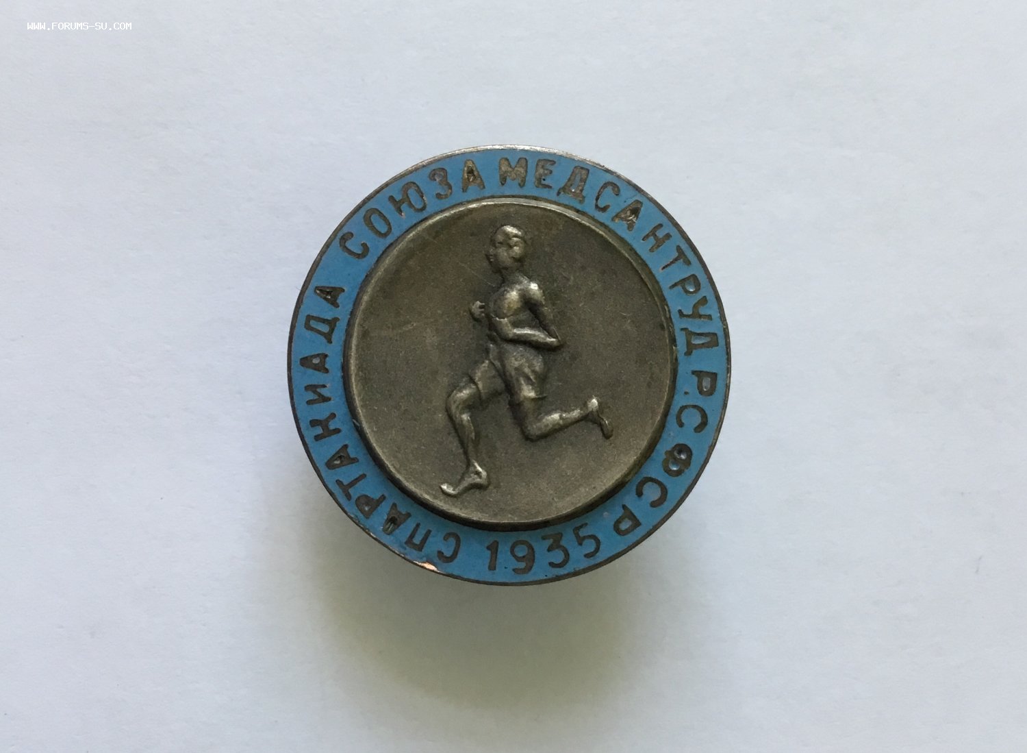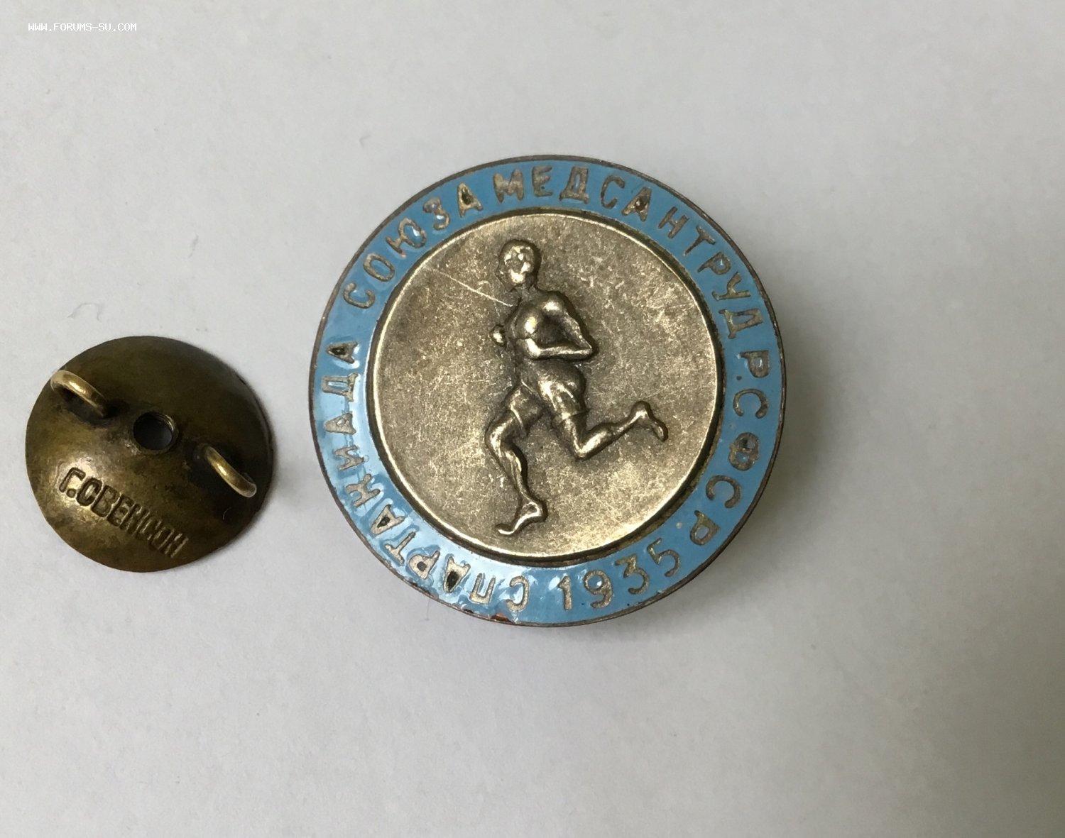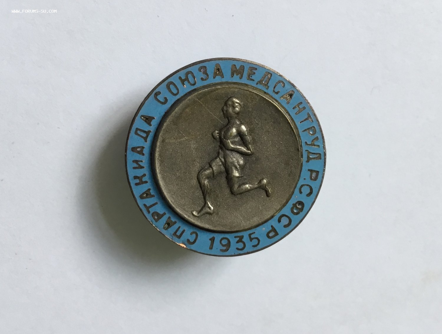 На голубой эмали небольшой скол над буквой «С» в слове «Спартакиада» у кромки металла. Рядом, над буквами «П» и «Р» ещё несколько сколов, у кромки. Под цифрой «3» два совсем крохотных скольчика у самой кромки металла. Вживую это всё, практически, не видно. На медальоне от груди спортсмена влево вверх-поверхностная царапина, видна при определённом угле освещения.