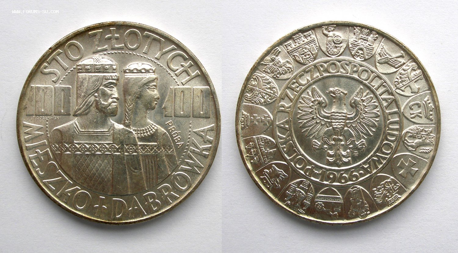Польша. 100 зл. 1966г. Тысячелетие ПОЛЬШИ. Серебро.ПРОБНАЯ.UNC. РЕДКАЯ.#1