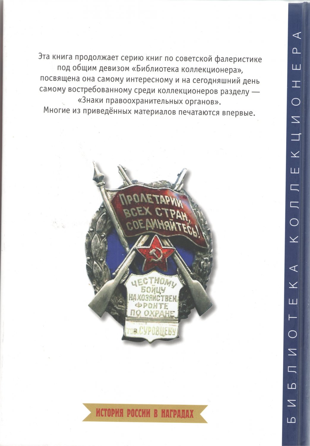 Эта книга продолжает серию книг по советской фалеристике под общим девизом "Библиотека коллекционера". Посвящена она самому интересному и на сегодняшний день самому востребованному разделу - знакам правоохранительных органов. Основное отличие и новизна книги в том, что она содержит не только знаки, учрежденные в правоохранительных органах, но и те знаки, которые носили чекисты и работники НКВД, особенно в период с 1918-го по 1933 год. Наряду с наградными знаками показаны и служебно-должностные. Очень полно отражены знаки, которыми награждались сотрудники НКВД в период первых пятилеток за пуск специальных объектов народного хозяйства, находившихся под контролем партии большевиков и советского правительства, например, Байкало-Амурская магистраль, Беломорско-Балтийский канал, Турксиб, Магнитка, Днепрогэс и ряд других. Интересный факт - такие знаки получали и чекисты, и передовики из числа заключенных специальных лагерей, созданных для строительства.