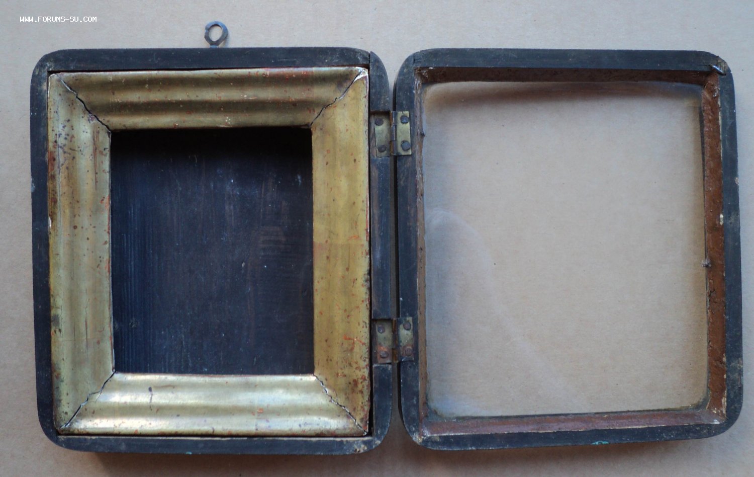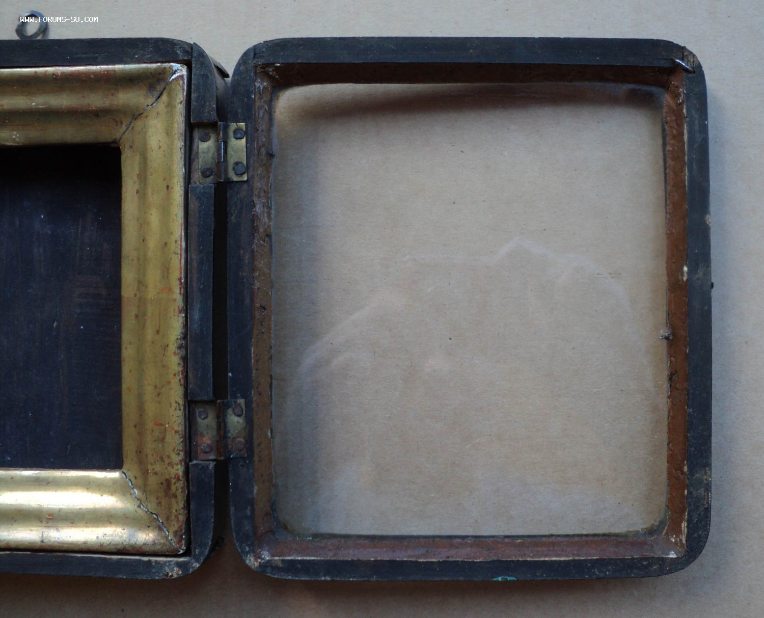 На дверке утрачен верхний левый наружный уголок, это место чем-то замазано в старое время.