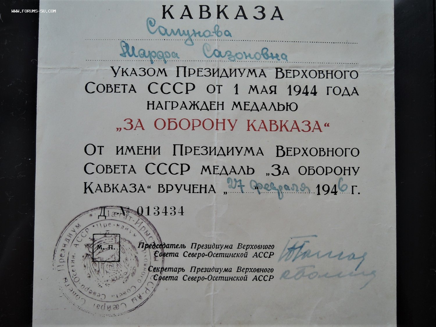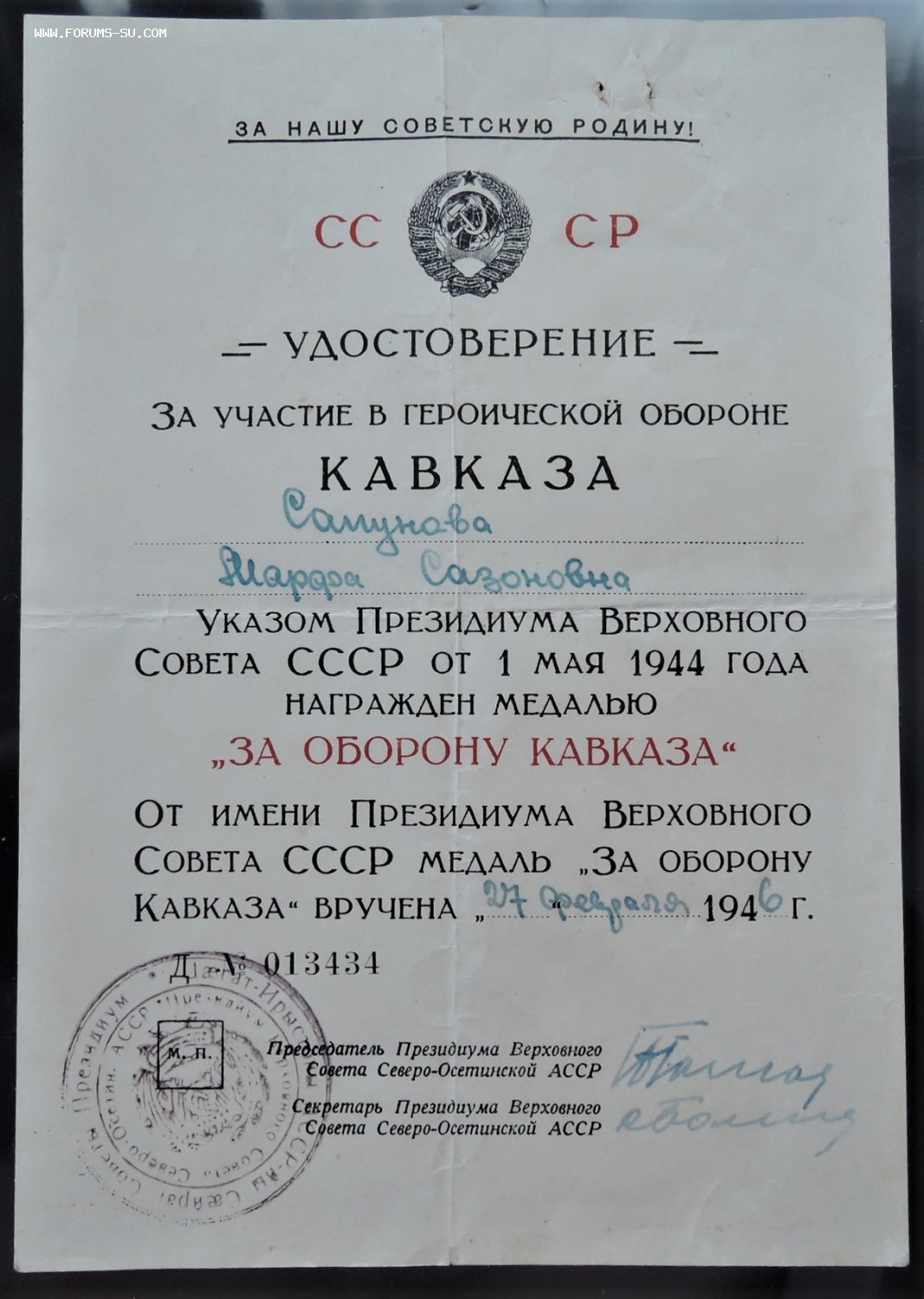 Удостоверение. Кавказ.
