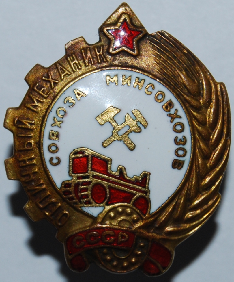 Действительно, знак из самых редких в этой подборке. Лично у меня такого нет. В живую видел только один раз. Единственно, могу для сравнения выложить сканы своих мондворовских трактористов и комбайнера.