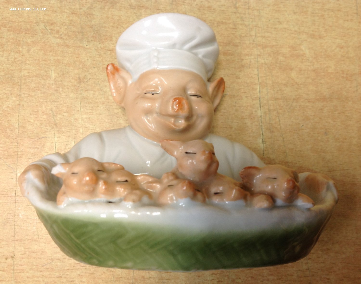 Повар Свин и поросята Moel - 15 сен 2018 16:49.26 × Мини профиль пользователя Moel Звание: Внимание! Кидала! Сообщения: 22748 Зарегистрирован: 31 авг 2005 21:49.38 Откуда: Россия Статус: Не в сети - 15 сен 2018 16:49.26 #6258245 Высота 10 см. скольчик на трех ушках...Сзади трещина..А в общем сочная приятная композиция.. Предложите по РФ! Фото