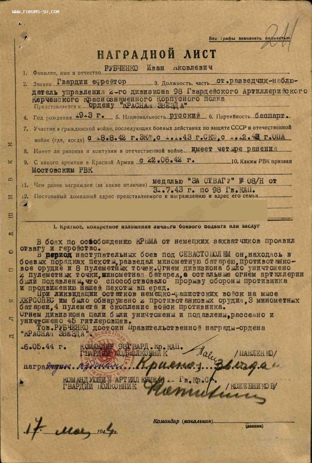 Красного Знамени, Суворова, Кутузова, Богдана Хмельницкого, Александра Невского, Ушакова, Нахимова, Отечественной Войны, Красной Звезды, Славы, За Службу Родине в ВС СССР