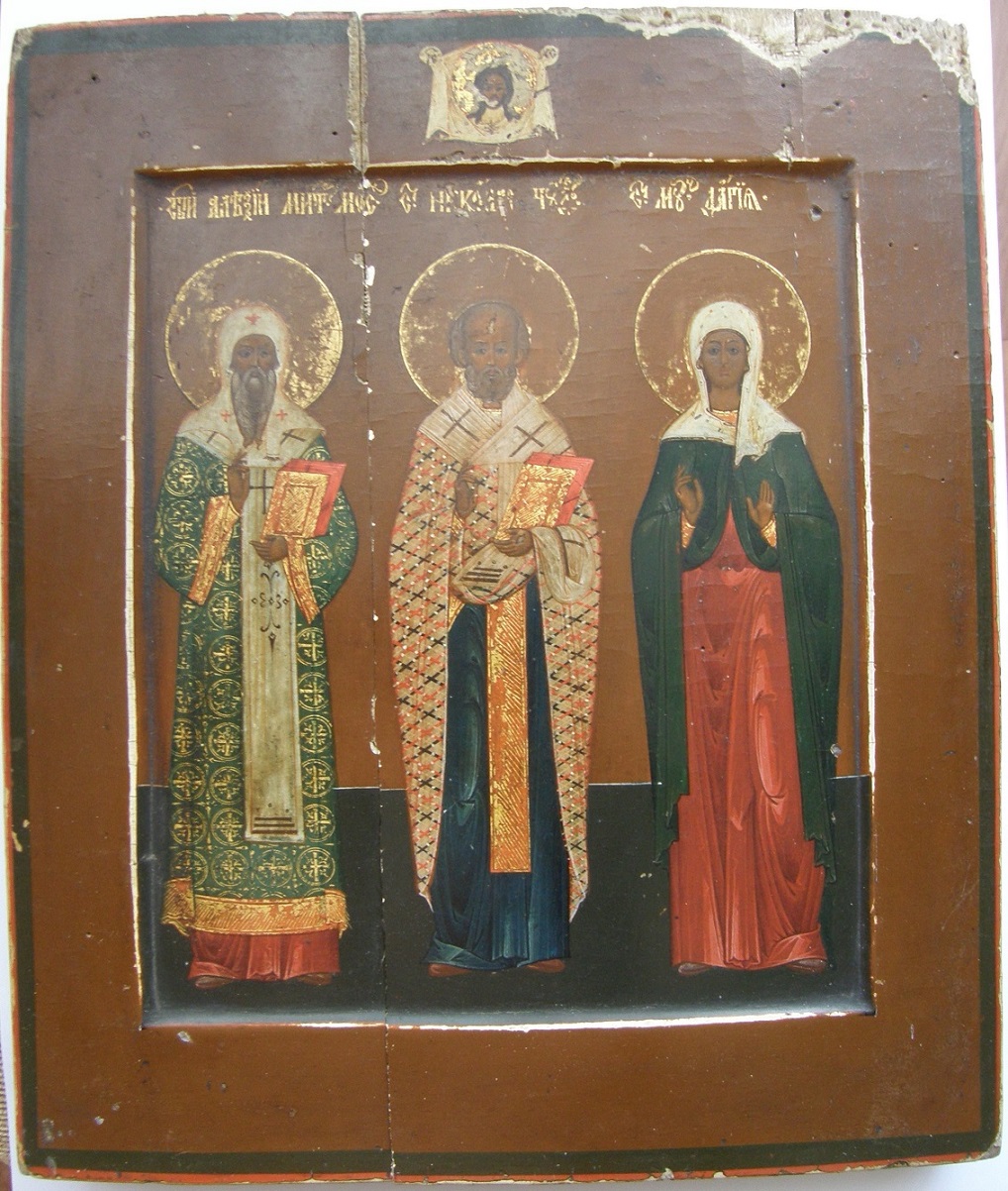 Икона Св. Алексий митрополит московский, Св.Николай Чудотворец, Св. вк.муч. Дарья.