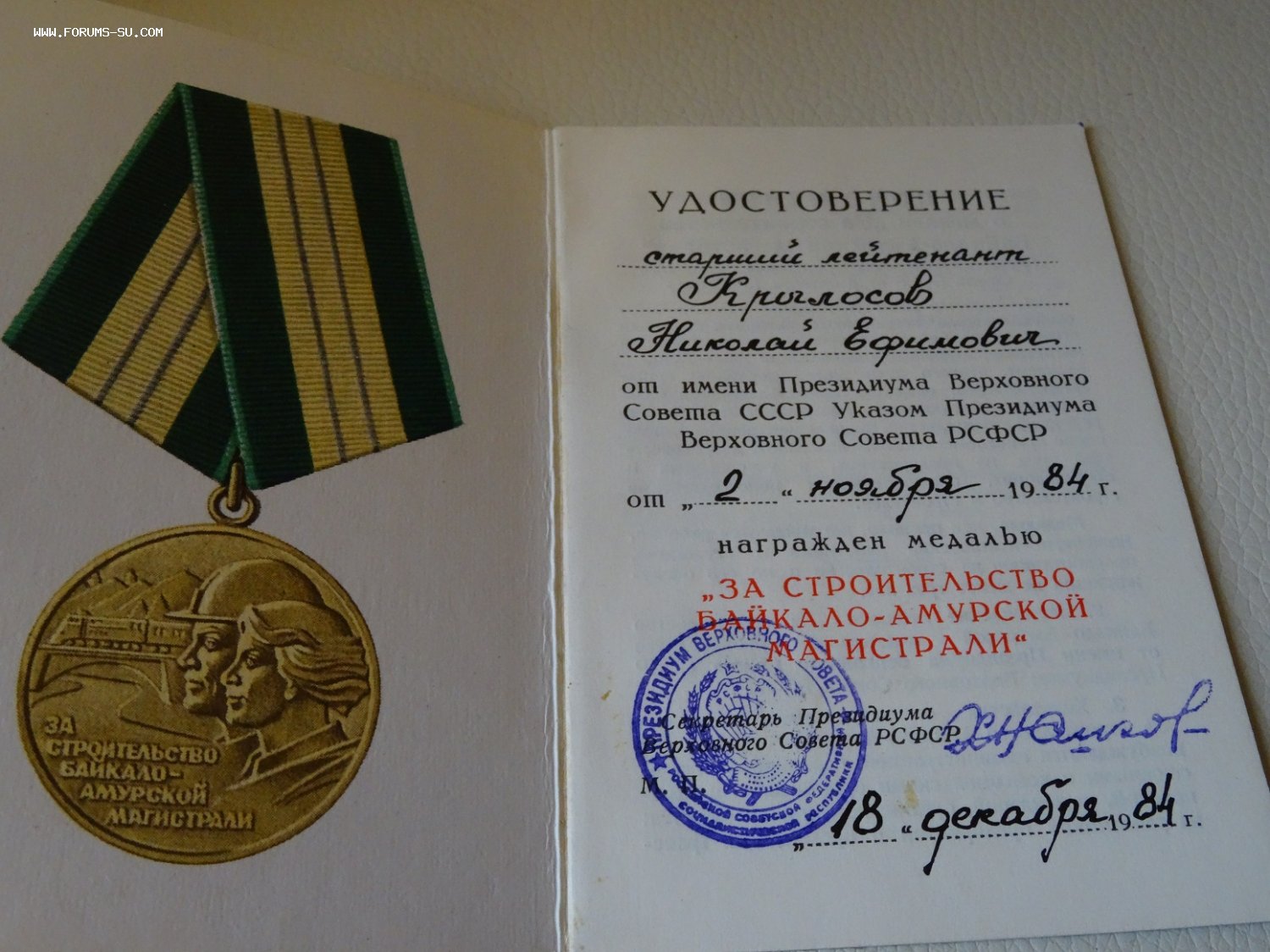 В продаже по РФ. Две медали БАМ с документами на мужу и жену.