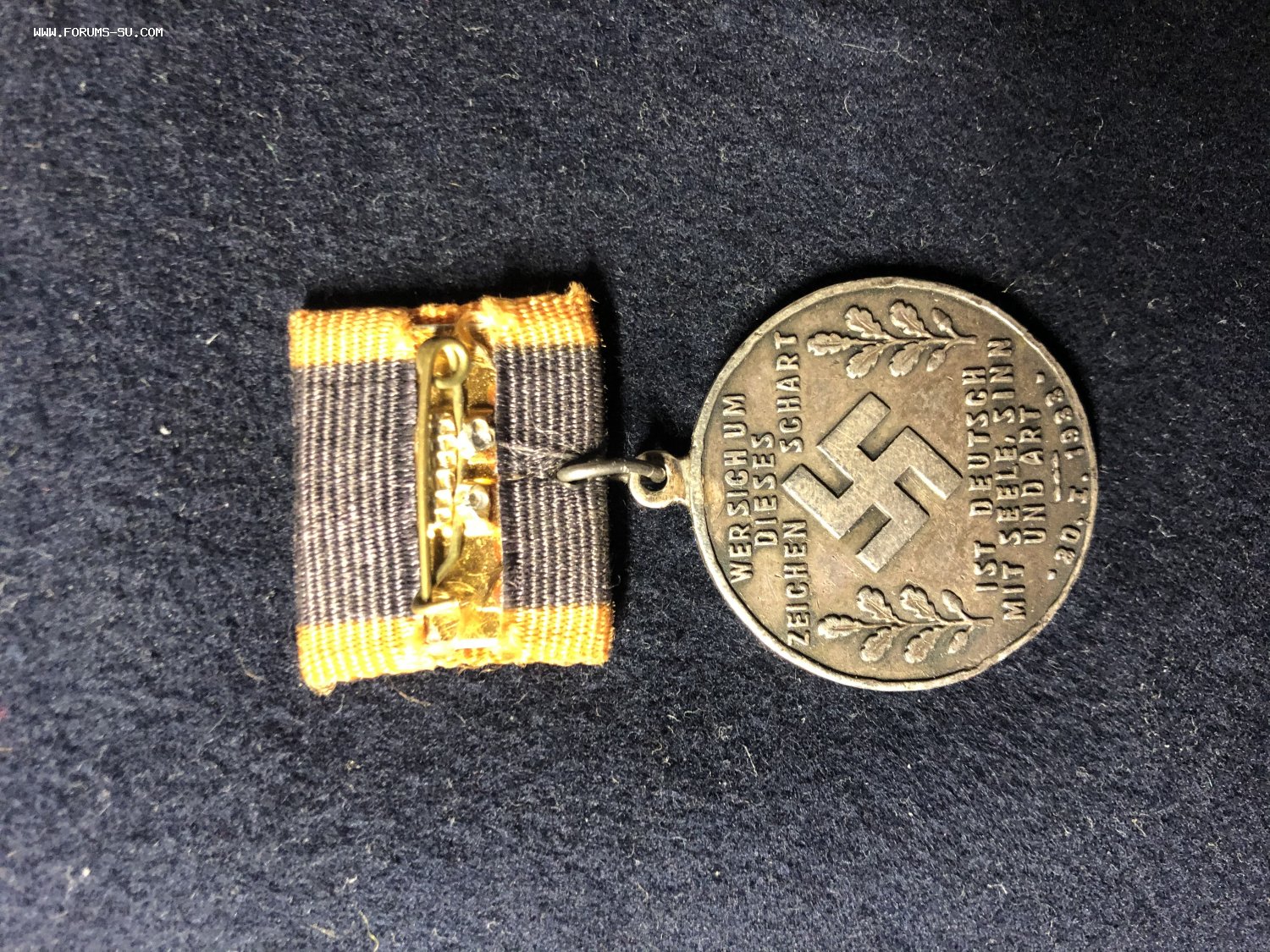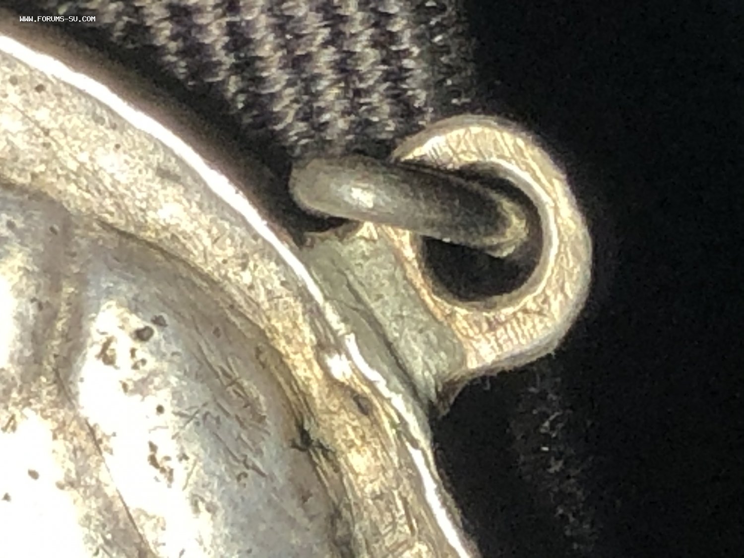 На медали припаяно неродное ухо. Эта медаль в оригинале без уха и , вероятно, носилась в кармане.