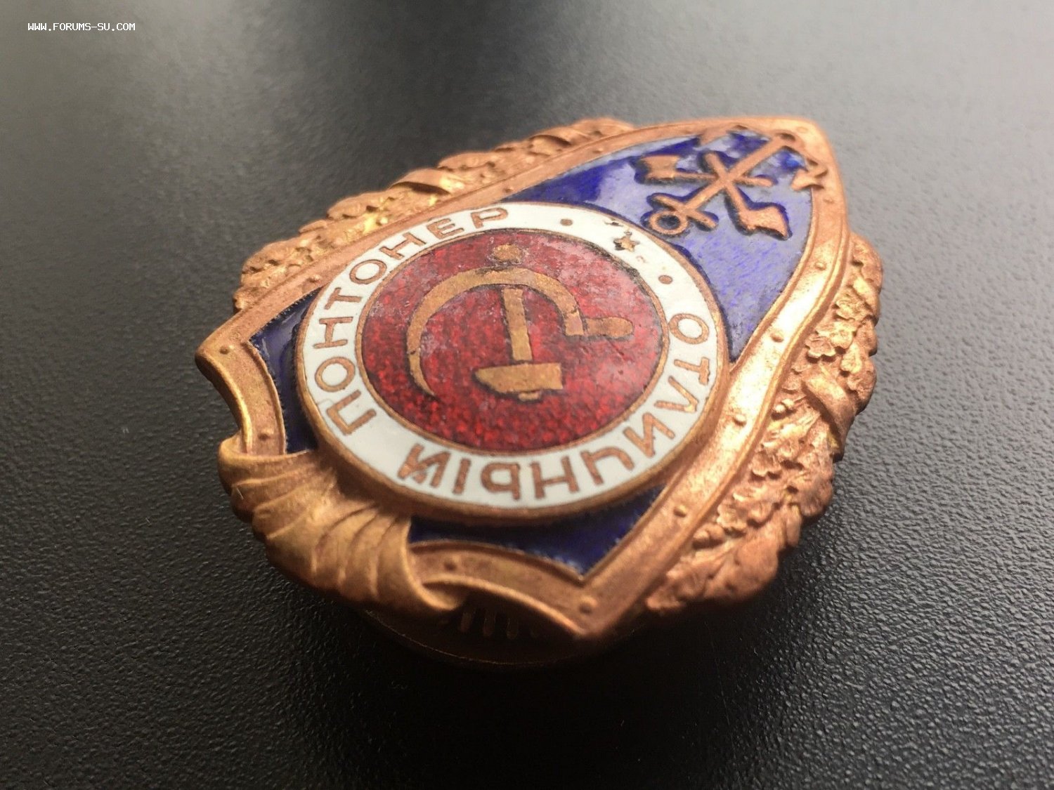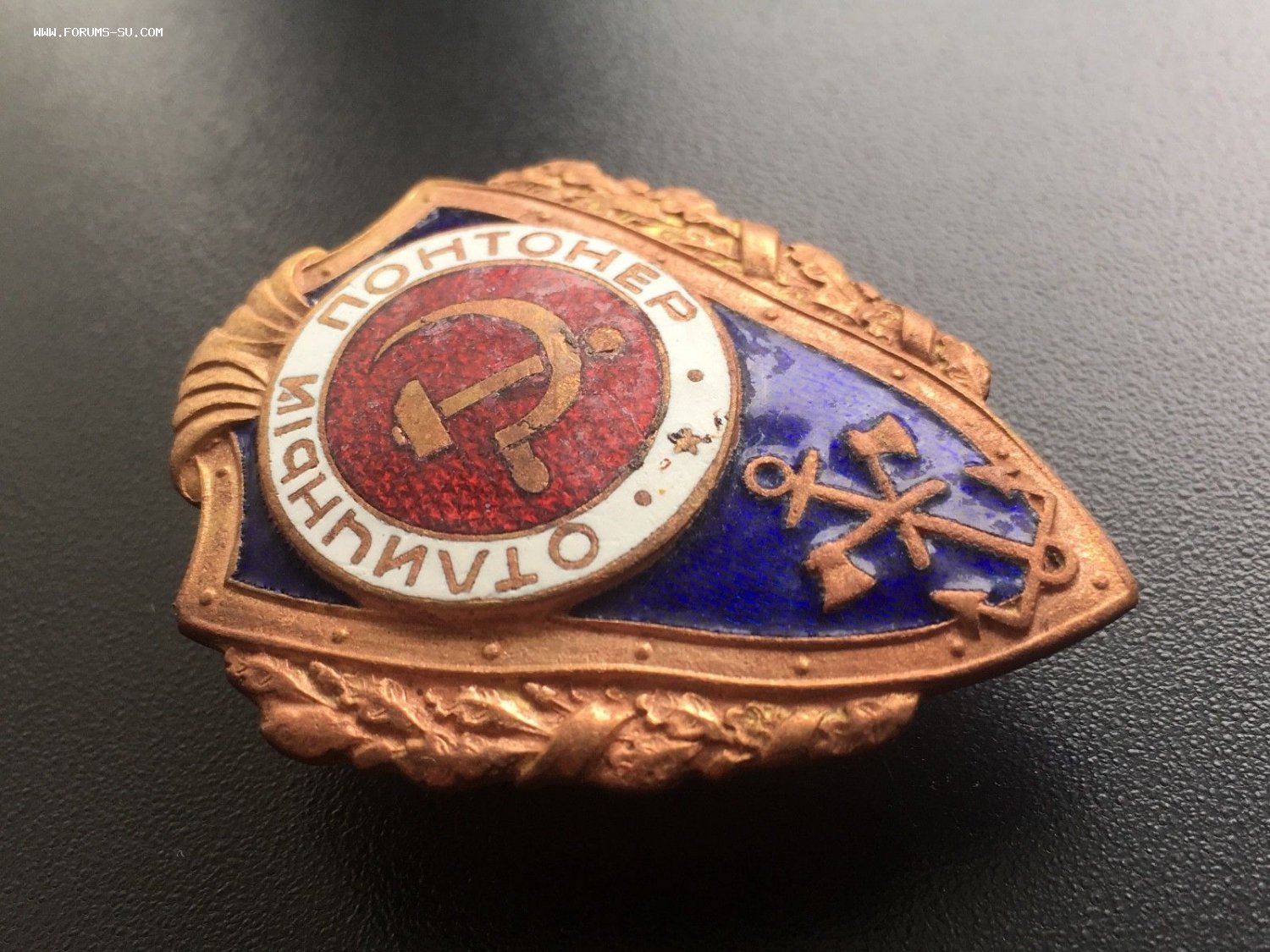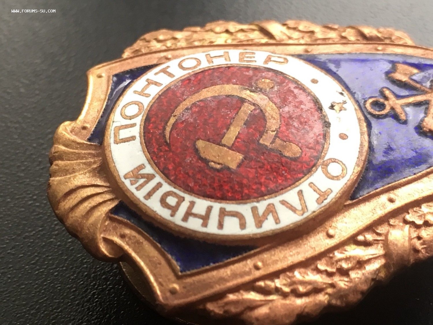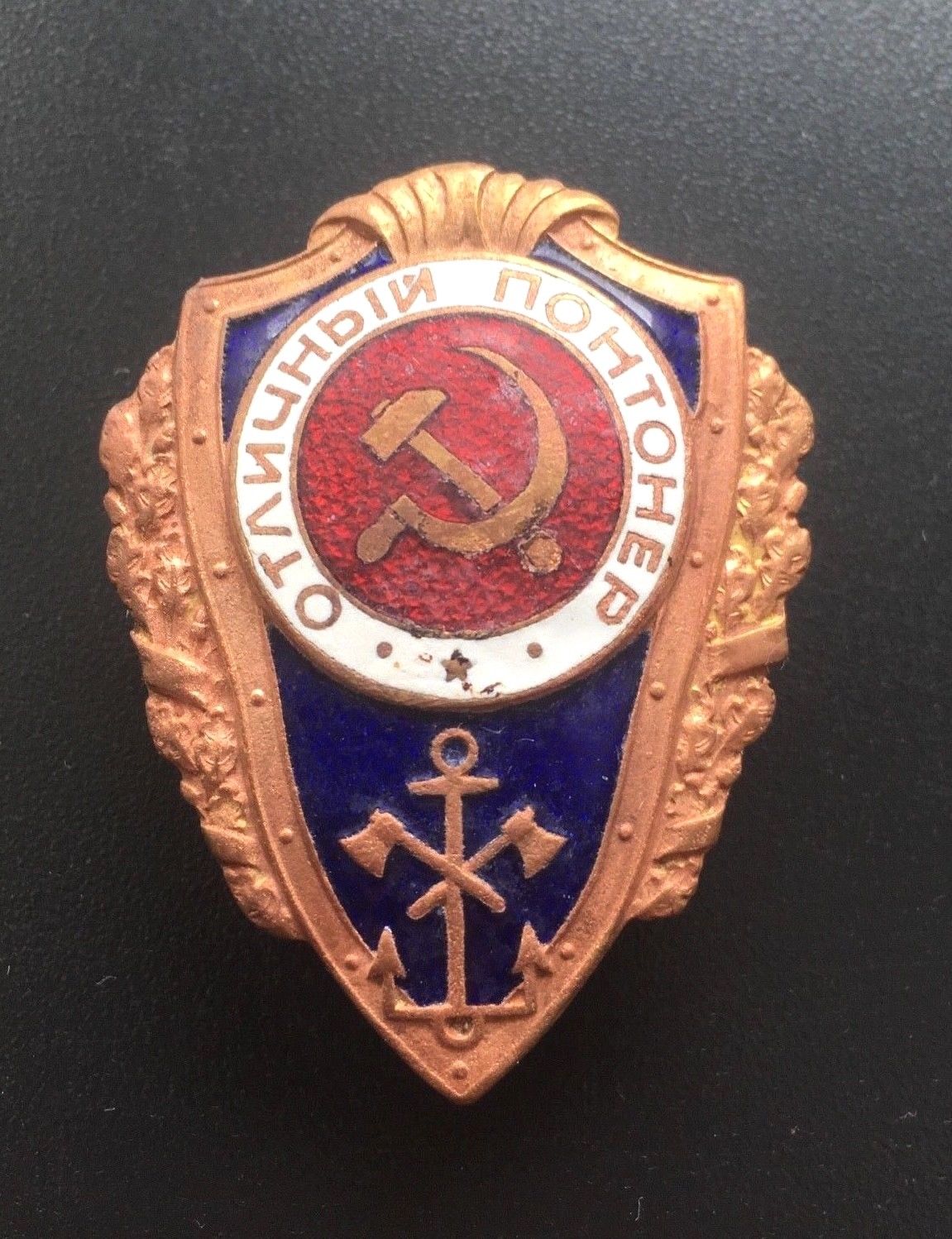 Редкий знак Отличный Понтонер (1 тип по Хламкину). Состояние: знак копаный, почищен после находки лимонной кислотой. Синяя эмаль без повреждений. Красная и белая имеют микро сколы и царапины. Резьба в отличном состоянии. Буду благодарен за предложения. Доставка по миру: 5евро. Просьба ставки также делать в евро.