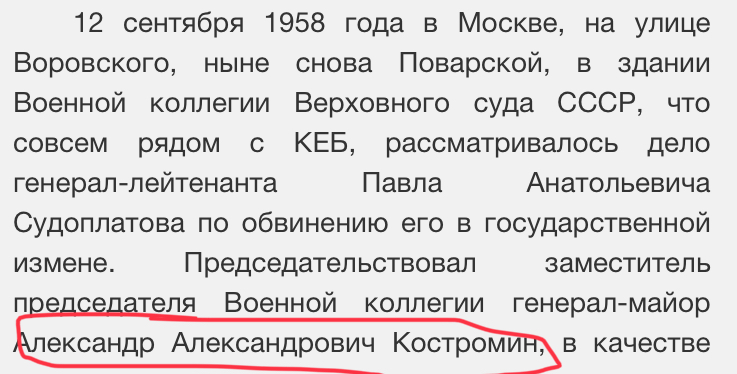 Генерал юстиции, дело Судоплатова kadet519 - 31 окт 2018 14:15.23 × Мини профиль пользователя kadet519 Сообщения: 1046 Зарегистрирован: 29 авг 2008 17:50.23 Откуда: Москва Статус: Не в сети - 31 окт 2018 14:15.23 #6273514 Фотографии генерала Костромин Александр АлександровичПредложите Фото