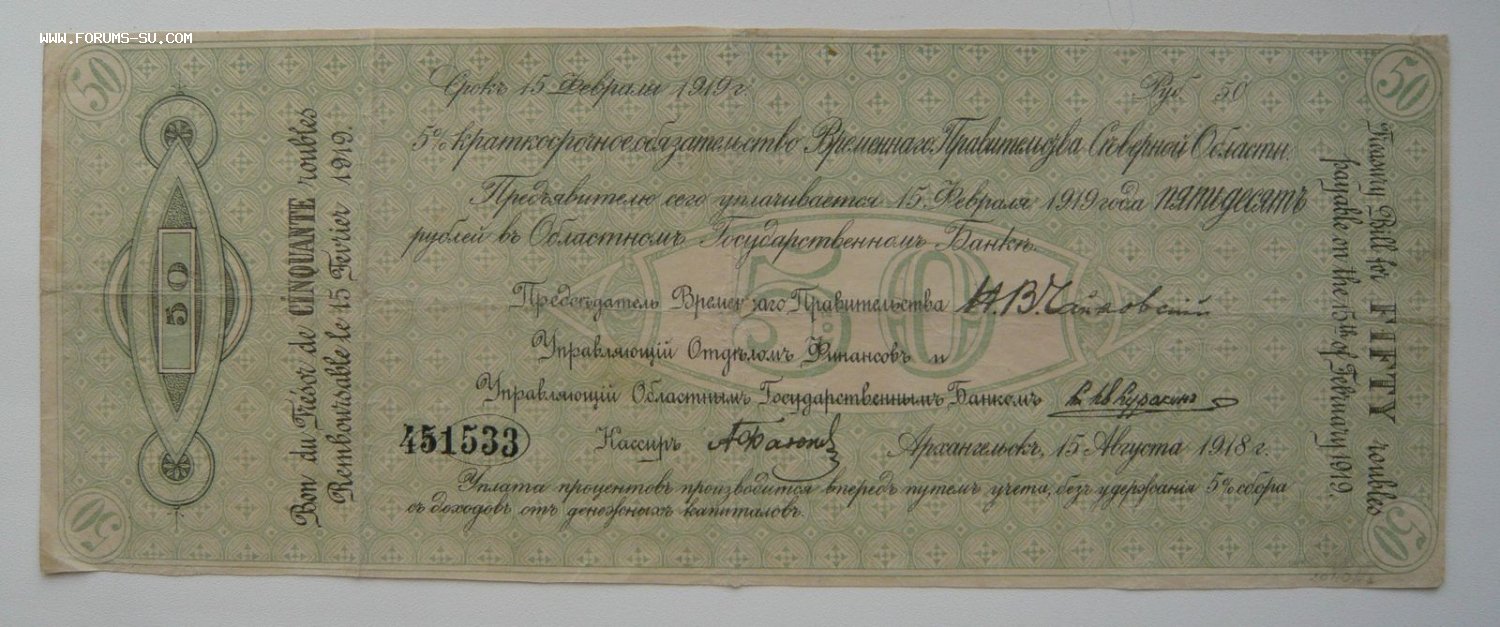 50 рублей 1918г. (Временное правительство Северной области) DEVIL - 17 сен 2019 10:22.05 × Мини профиль пользователя DEVIL Сообщения: 3028 Зарегистрирован: 15 мар 2009 12:05.51 Статус: Не в сети - 17 сен 2019 10:22.05 #6283579 МПЦ 1500Добавлено B 10:07 23.09.2019:Продано, тема закрыта. Тема поднималась пользователем DEVIL 17 сен 2019 10:22.05.