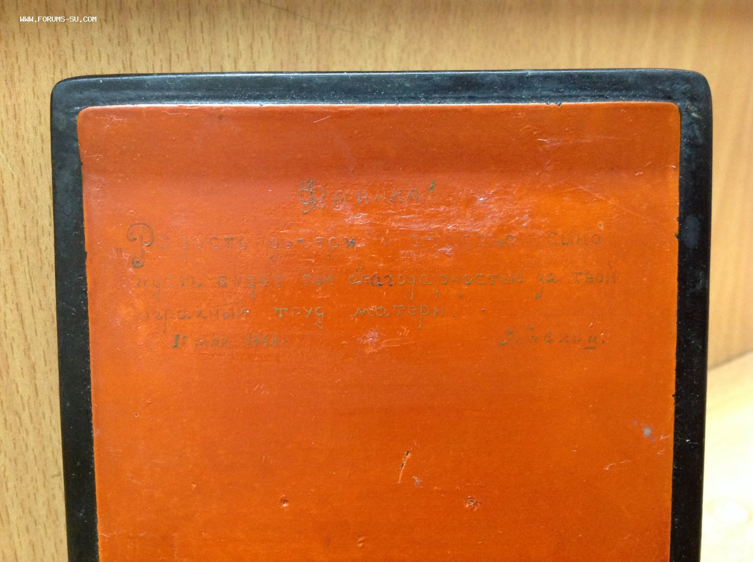 Размер 12 см на 10 см.Высота 4,5 см. Внутри на книжке неразборчивая подарочная надпись 1948 года.