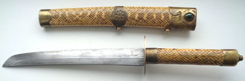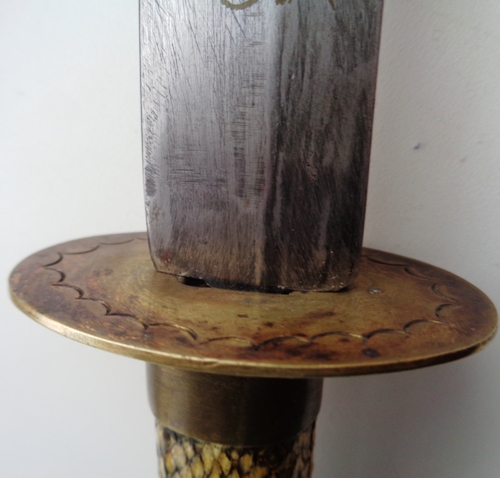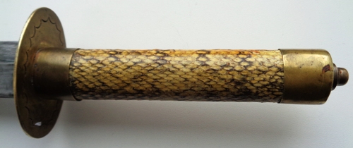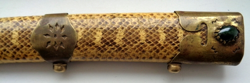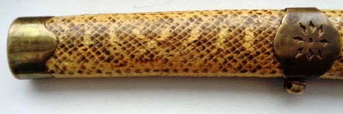 На рукоятке и ножнах кожа змеи.
