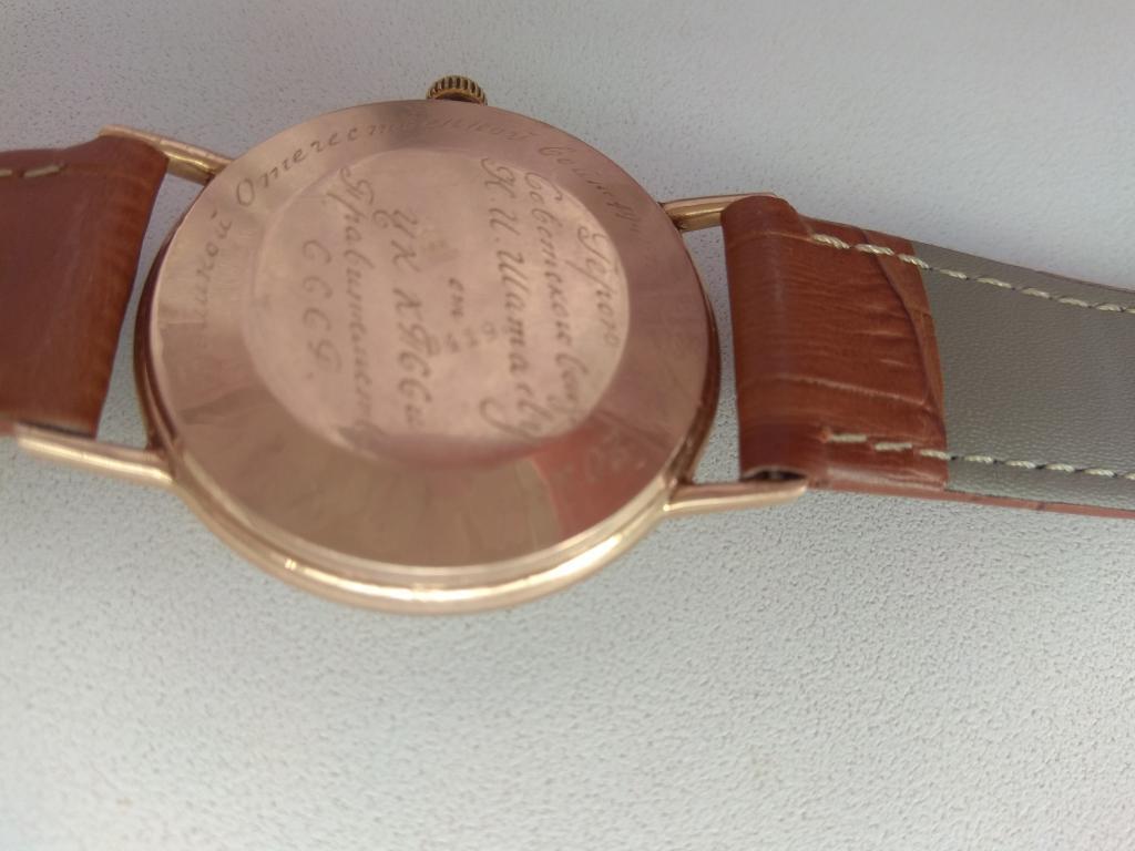 Золотые часы Полет Героя Советского Союза Шатаева Николая Ивановича. Надпись на часах - Герою Советского Союза Н.И. Шатаеву от ЦК КПСС и правительства СССР в день 20 летия Победы в Великой Отечественной войне 1941 - 1945. На задней крышке часов стоит номер 04198 и проба 583. На ходу. Часы в РФ.