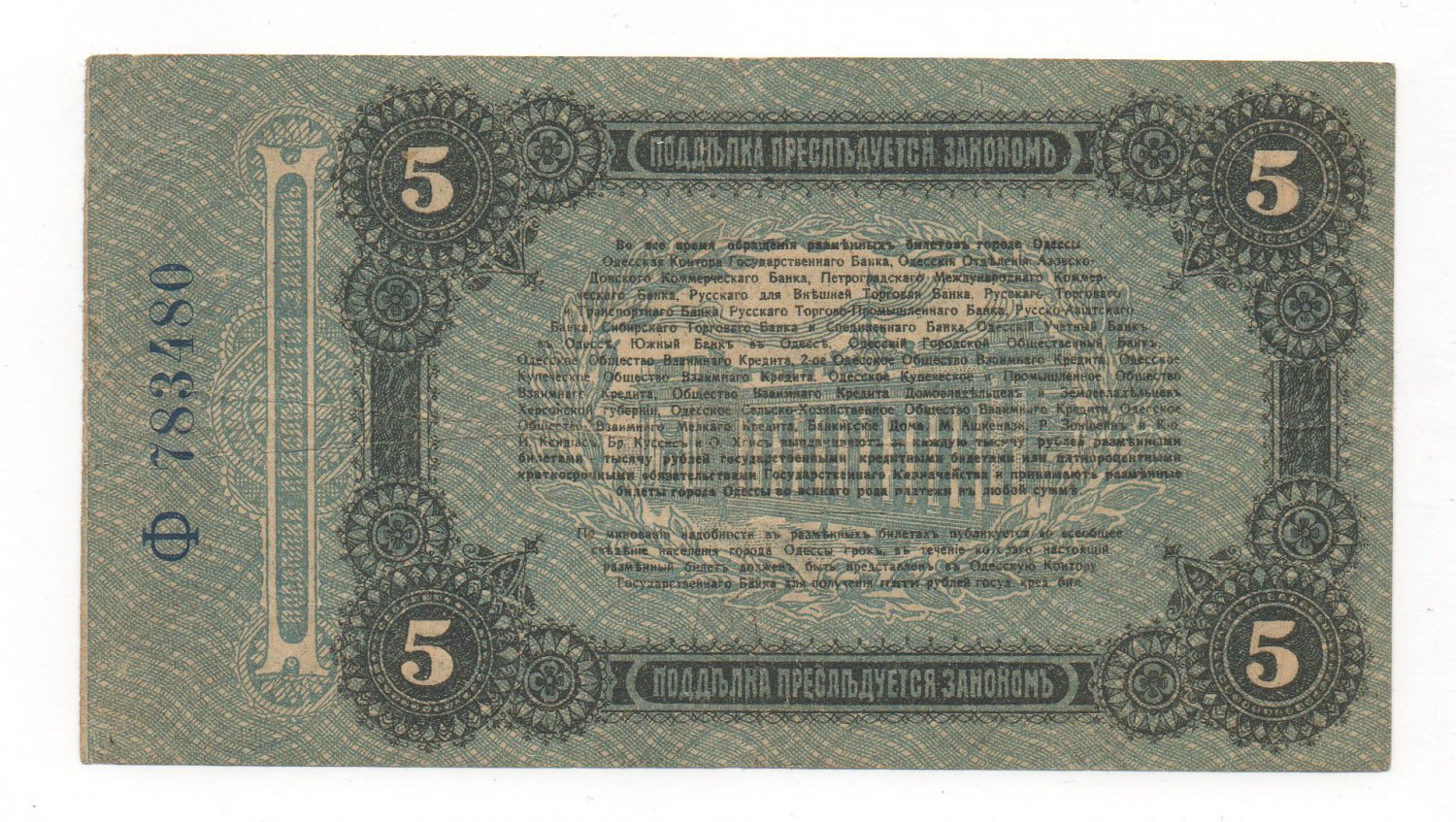 5 рублей 1917 года Одесса Svejk - 13 фев 2019 16:04.32 × Мини профиль пользователя Svejk Сообщения: 3749 Зарегистрирован: 30 май 2007 10:37.01 Статус: Не в сети - 13 фев 2019 16:04.32 #6307641 Фиксированно 700Пересыл 150 Фото За работу почтовых служб ответственности не несу.